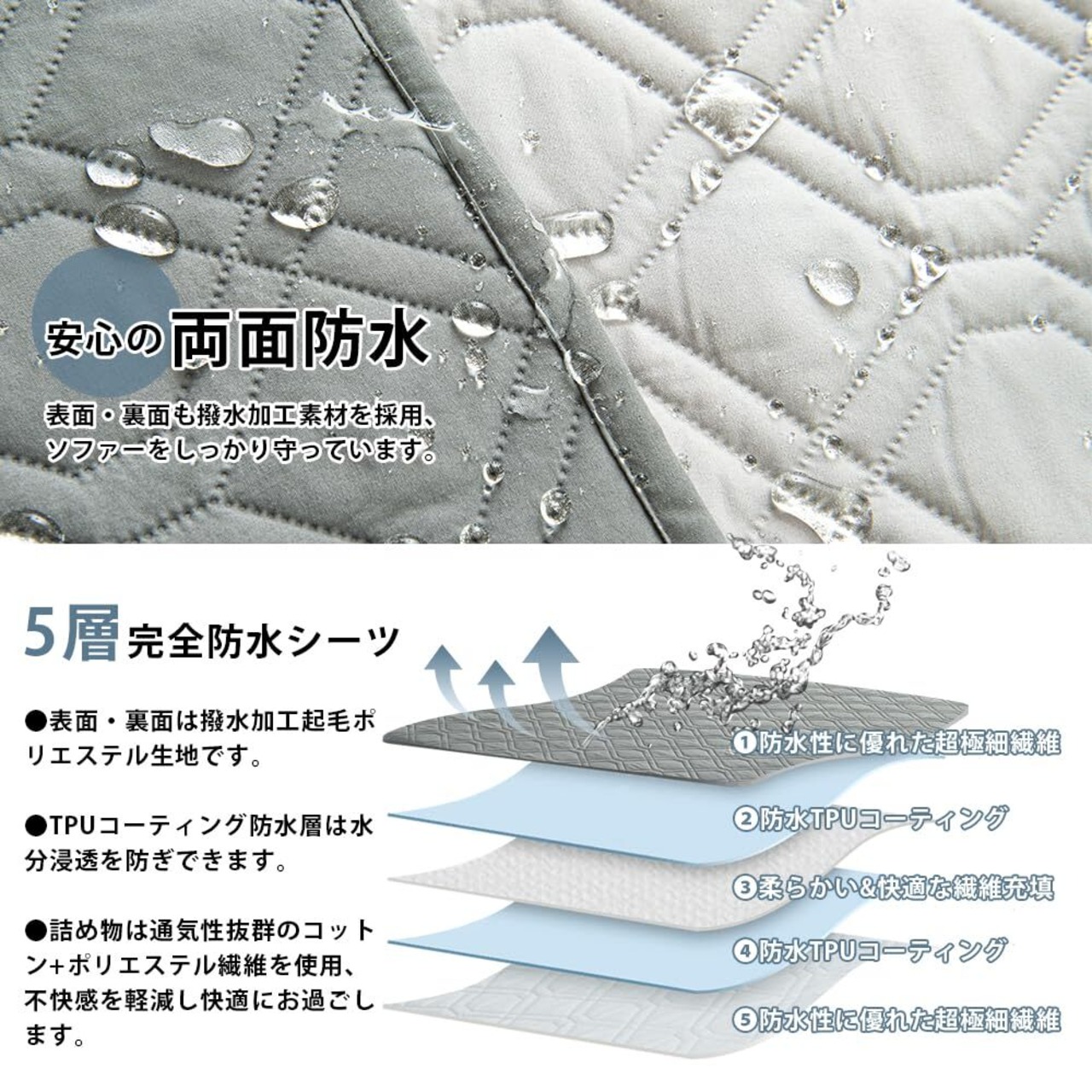 ソファカバー ソファパッド 【2024新デザイン リバーシブル 5層完全防水】 ソファーシーツ ペット 両面防水 犬猫対策 洗える 尿失禁 ベビー 高齢者 介護用 大判 汚れ防止 傷防止 爪とぎ防止(グレー 77*178CM)