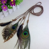 DRASAWEE(JP)ポへミア風 ヒッピーバンド 孔雀の羽 おしゃれ ヘアアクセサリー 髪飾り 民族風