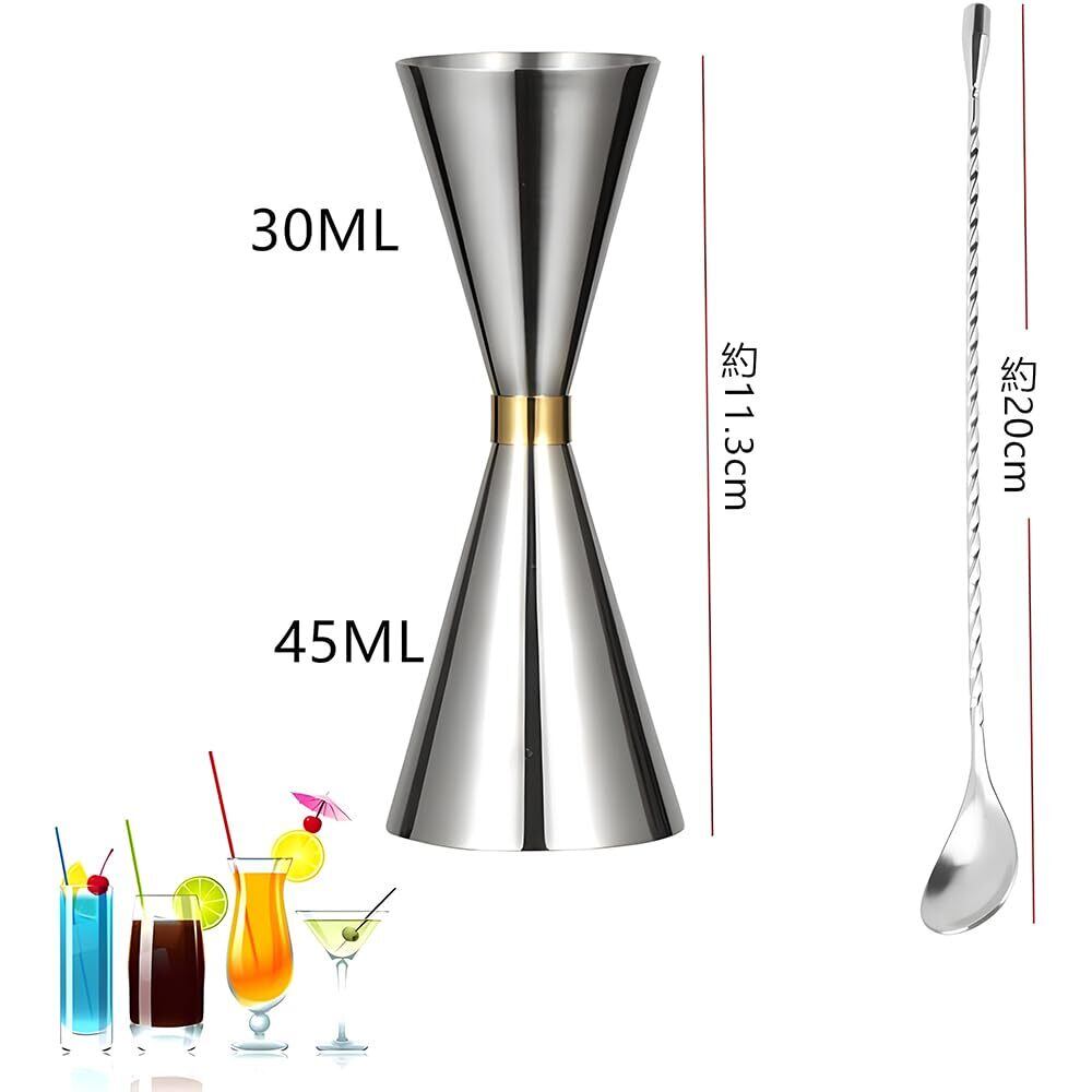 ジガーカップ カクテル メジャーカップ ステンレス鋼計量カップ バースプーン バーテンダー バー用品 カクテル計量カップ