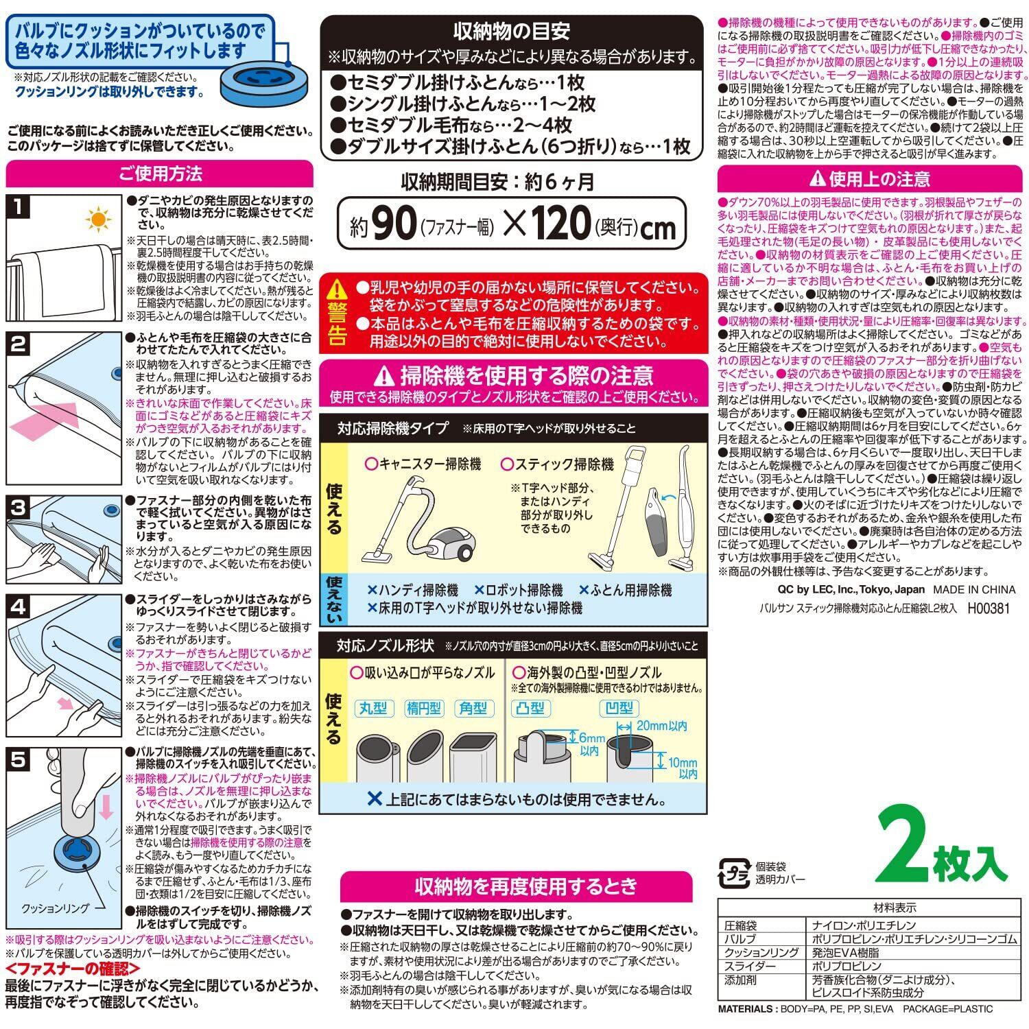 【在庫セール】レック(LEC) バルサン スティック掃除機対応 ダニ除け・防虫加工 ふとん圧縮袋 Lサイズ (2枚入) /目安:セミダブル掛けふとん1枚/ふつうの掃除機もOK/H00381 | ニコニコSHOP