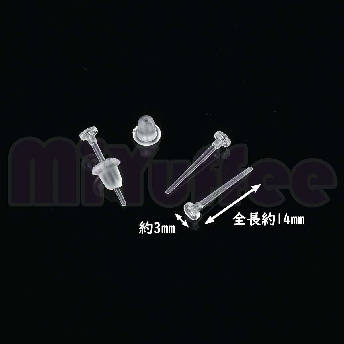 [MiYuffee] シークレット ピアス パーツ クリア 樹脂 20ペア40個 シリコンキャッチ付き 金属アレルギーフリー (3mm丸皿)