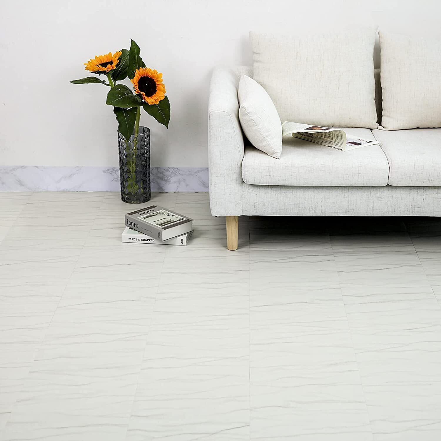 大理石 フロアタイル 床 リメイク シート 10枚入り トイレ 浴室 玄関 防水 フローリングシート 置くだけ 模様替え 接着剤不要 床材 (大理石柄 白Xグレー 型番号51)