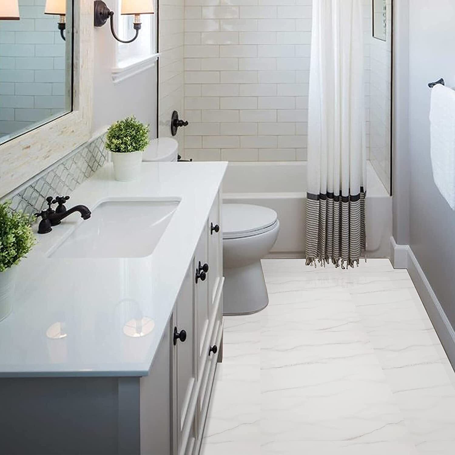 【在庫処分】大理石 フロアタイル 床 リメイク シート 10枚入り トイレ 浴室 玄関 防水 フローリングシート 置くだけ 模様替え 接着剤不要 床材 (大理石柄 白Xグレー 型番号51) | ニコニコSHOP