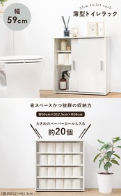 【省スペースかつ大容量】:奥行19.5cmと省スペース設計なので、狭い場所でも気兼ねなく設置ができます。さらに、コンパクトながらも大きめのトイレットペーパーが20個収納できる程の収納力も兼ね備えています! (1個:約幅12cm×高さ11.5cmで計測)