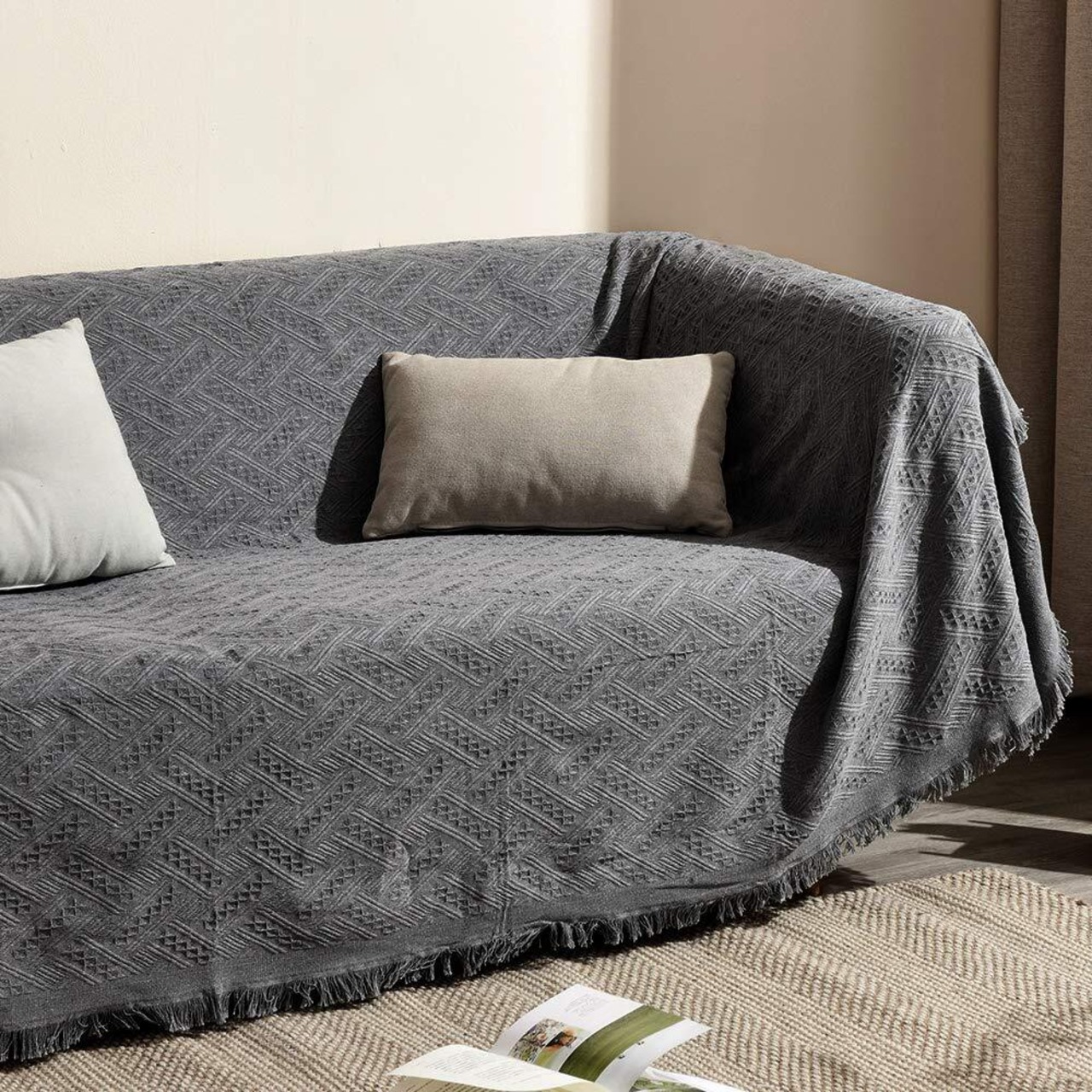 ●フリンジ付き、北欧風ソファーカバー/マルチカバーです。