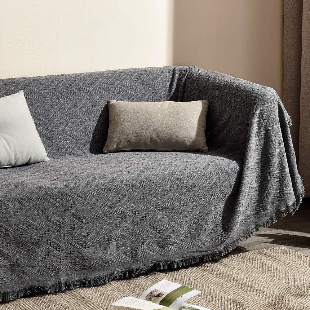 【在庫セール】【 限定】クモリ(Kumori) ソファカバー 北欧風 マルチカバー 多機能 ソファーかばー フリンジ付き おしゃれ 1234人掛け 保護カバー ほこり キズ 汚れ防止 洗える 四季通用 グレー・T柄 180×300cm(3人掛け) | ニコニコSHOP