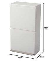 行き来の多いキッチンでも邪魔にならない、薄型ワイドペール。上段は片手でフラップ式、下段はペダル式で簡単開閉