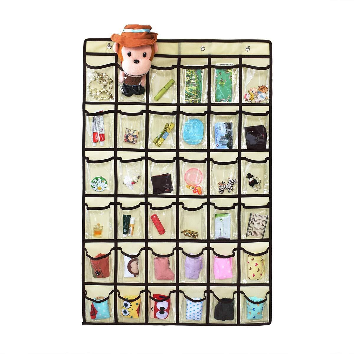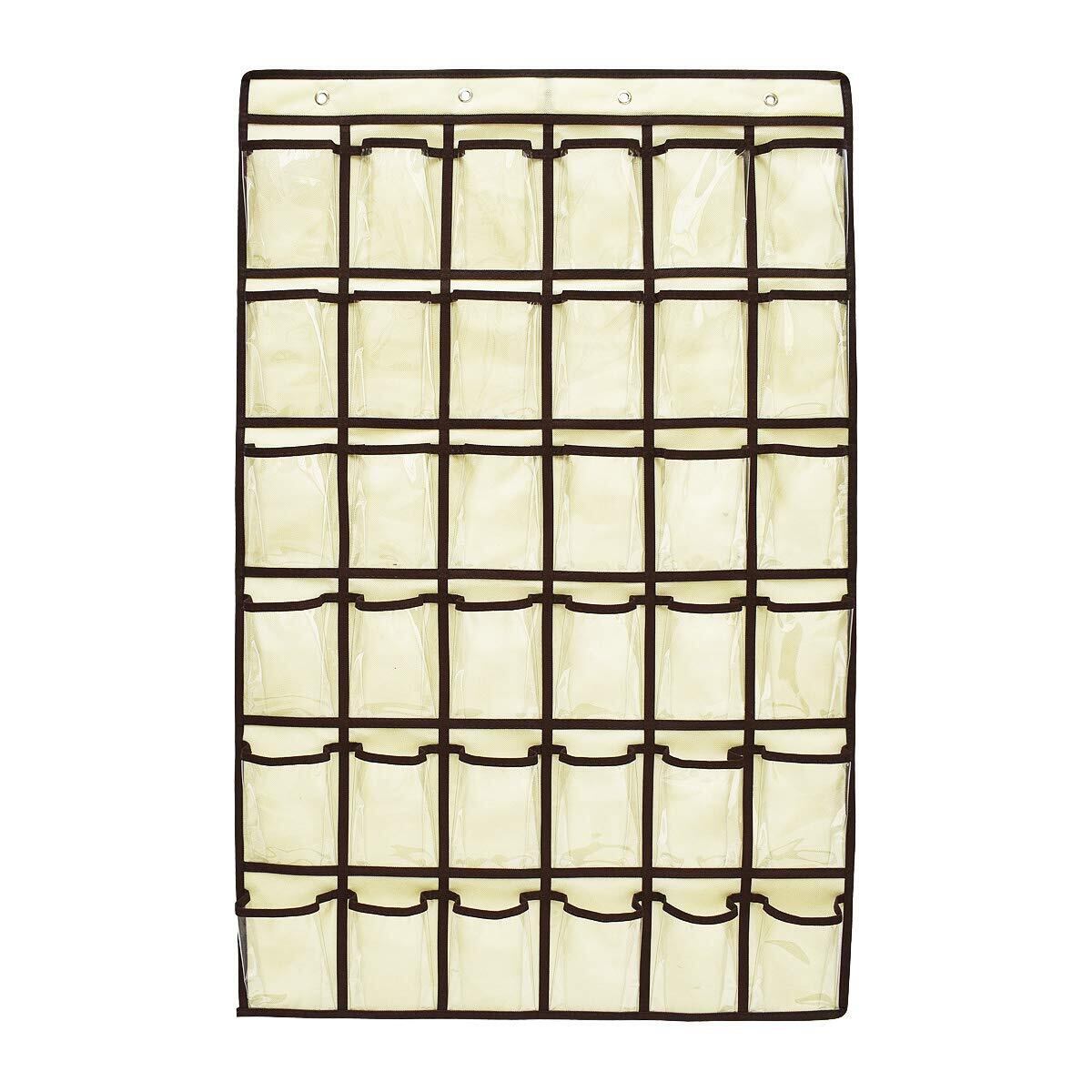 【在庫処分】SURCHAR ウォール ポケット カレンダーポケット クリア 壁掛け 収納 ポケット 透明ポケットカレンダー 吊り下げ ポケット クローゼット 小物 収納 ポケット 収納袋 フック付き 2サイズ 12/36 ポケット (ブラウン,36格) | ニコニコSHOP