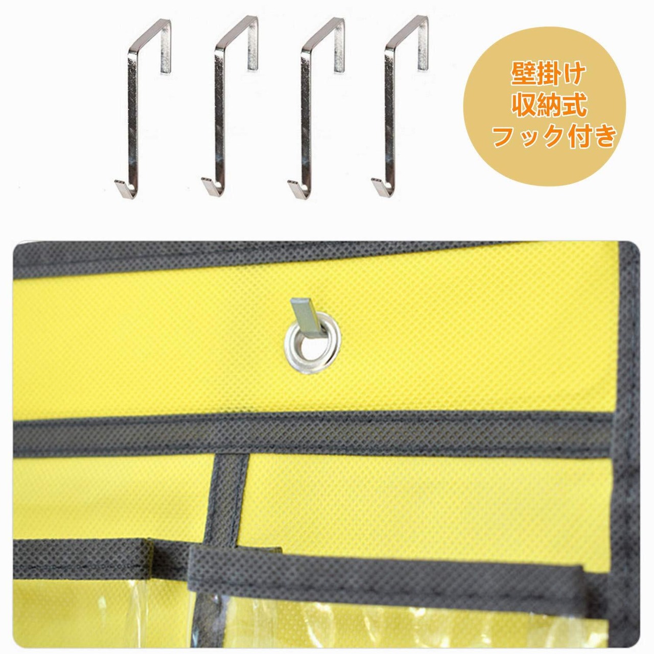 【仕様】2サイズ: 36ポケット: 横60cm高さ96cm、重量約0.45kg。12ポケット: 横30.5cm高さ66.5cm、重量約0.15kg。それぞれのポケット: 横9cm高さ12cm 。36ポケットには4つのフックが付いています、12ポケットには2つのフックが付いています。クリア カレンダーポケット。