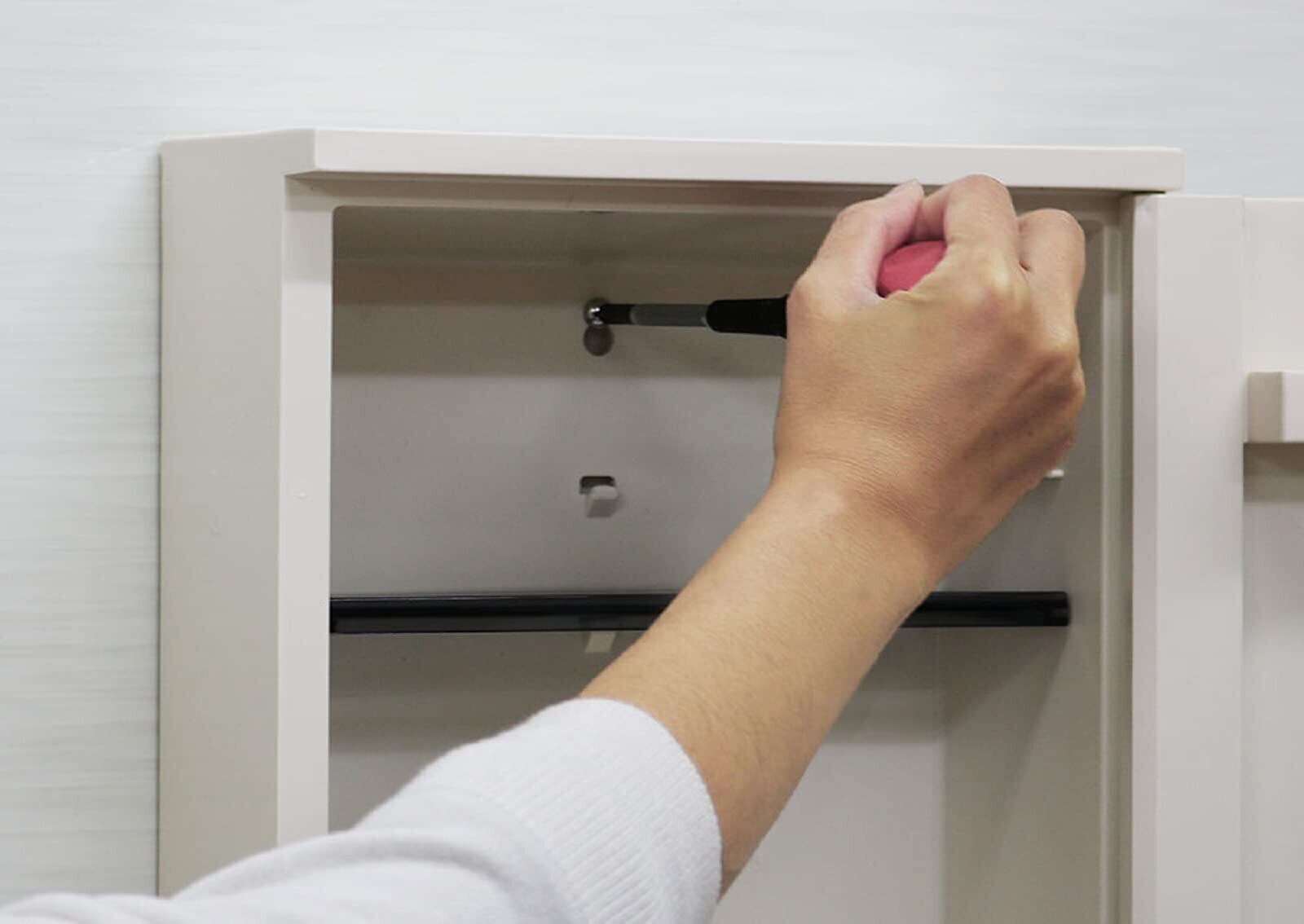 同梱してある木ネジを使用して取り付けて下さい。