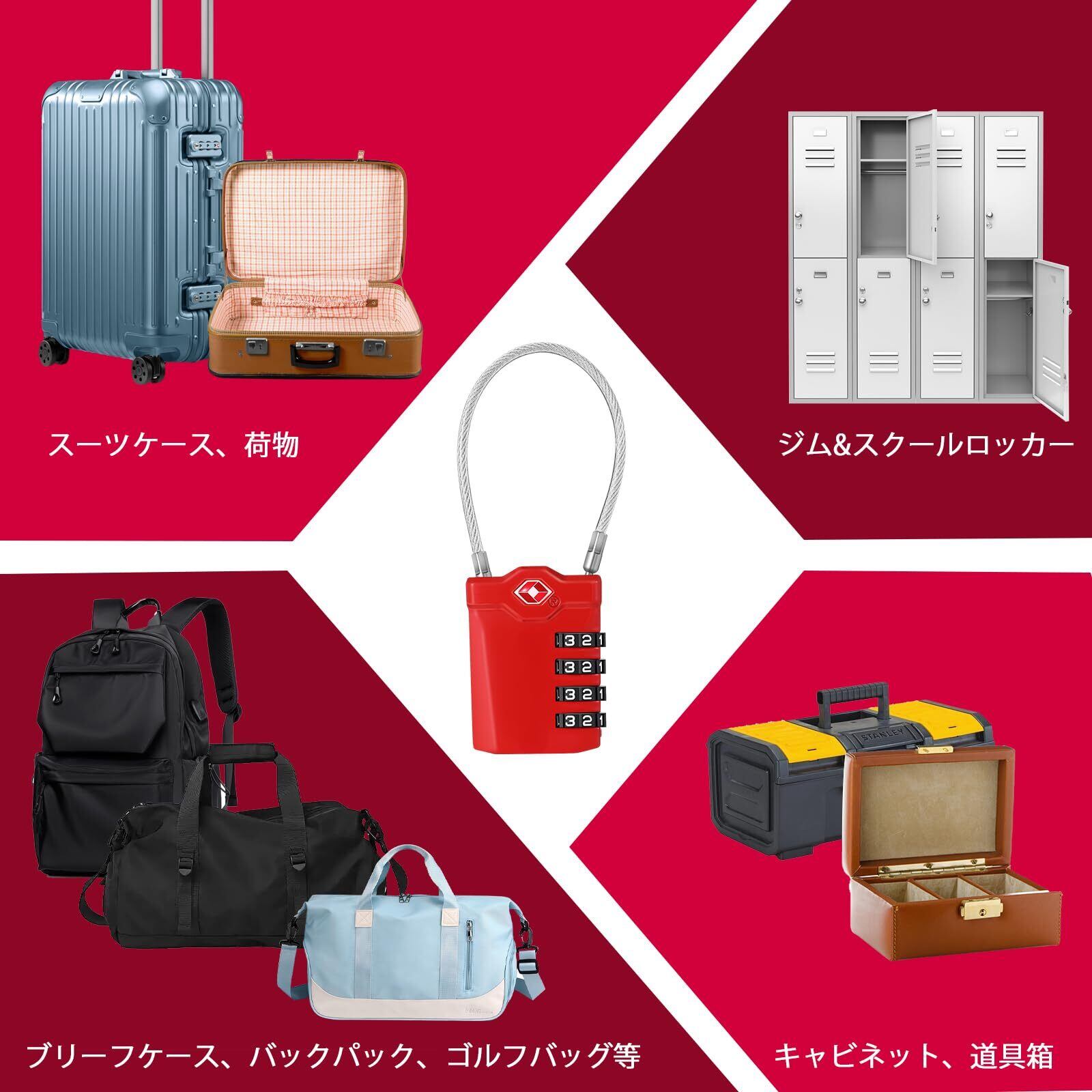 ▶多用途:旅行便利なグッズ、スーツケース、ホステル、ジムロッカー、バックパック等に適用