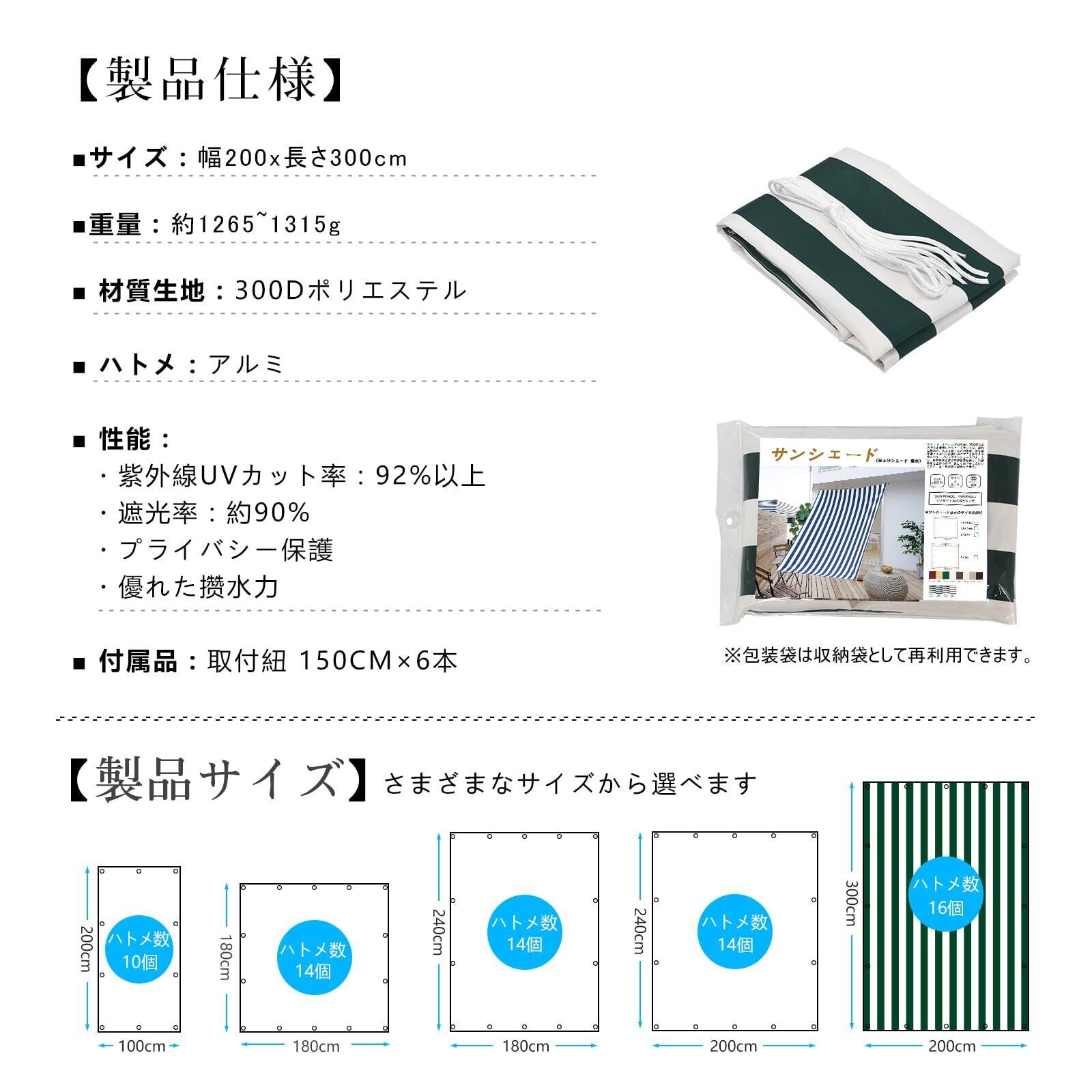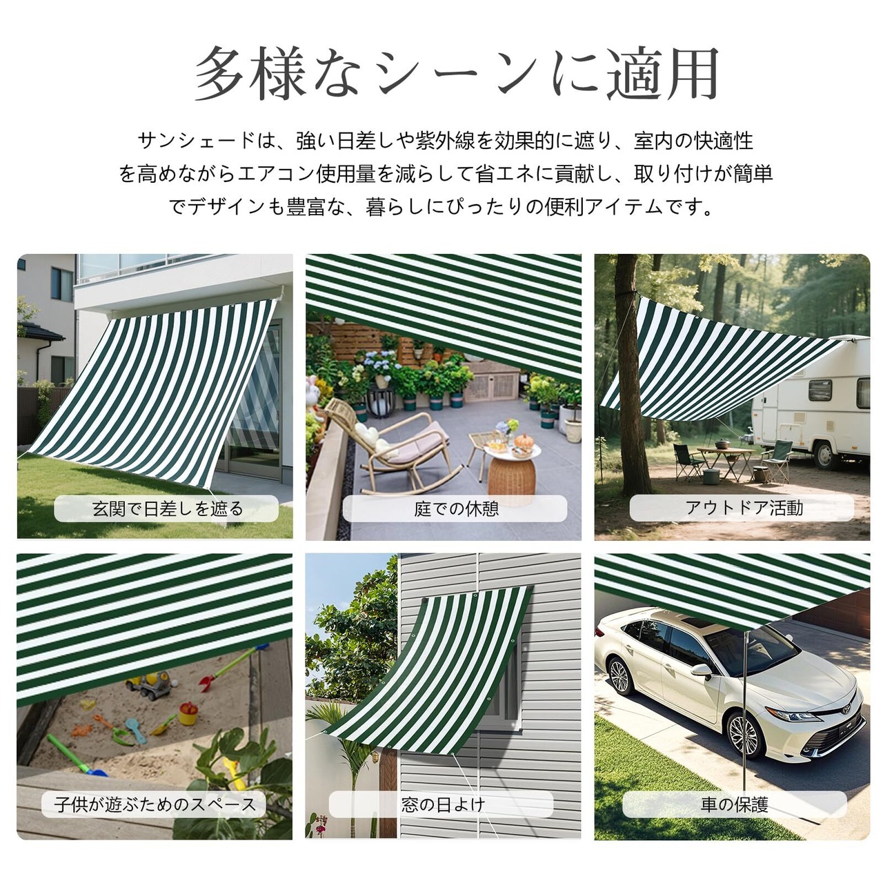 錆びないのゴールデンアルミハトメが付いているので、付属品:6本x1.5m取付けひも、ベランダや窓ペ、廊下、庭下、庭先、玄関などに簡単に取り付けることができます。お洒落なデザインなので、日よけだけでなく、ご自宅やお庭のエクステリアとしてもご利用なれます。