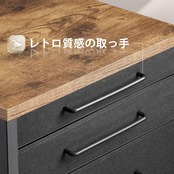 【温かみのあるデザイン】布制のキャビネットに金属のシンプルな取っ手と質感のある木制の天板を組み合わせました。シンプルなデザインと落ち着いた色合いで、単体の使用でも違和感なくインテリアになじみます。オフィスや寝室、リビングなど、さまざまな場所で使用できます。