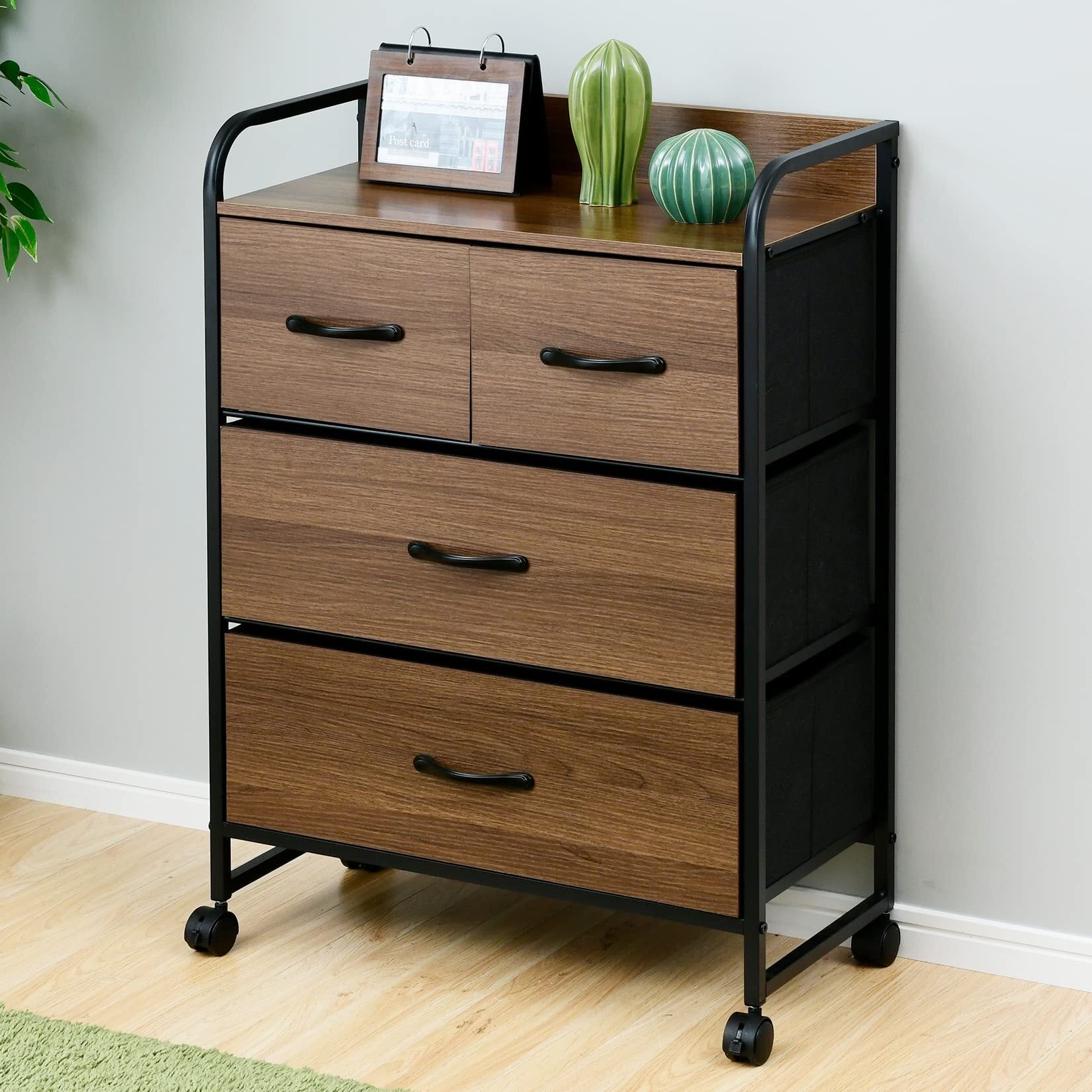 山善(YAMAZEN) チェスト 収納 (ストッパー付きキャスター) ロボット掃除機が入る 前面木製 3段 幅58×奥行29×高さ83cm カンタン組立 ブラウン/ブラック YZFC-6080T(BR/BK)