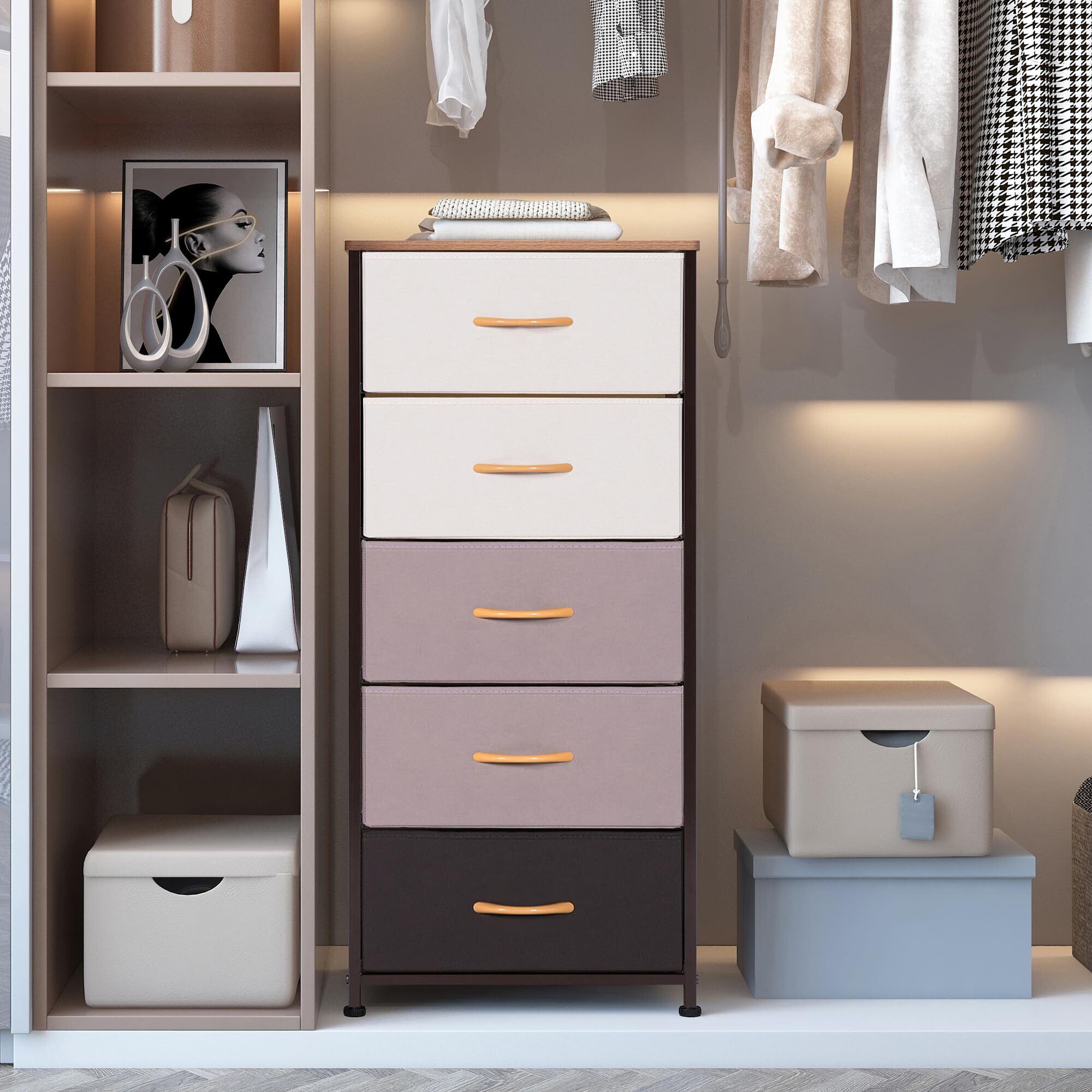 LYNCOHOME チェスト タンス 隙間収納 スリムストッカー 脱衣所収納 タオル 布製 引き出し シンプル 一人暮らし 転倒防止 5段 【幅45×奥行29.8×高さ98cm 】