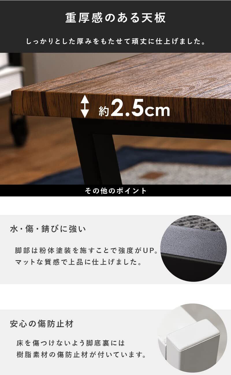 食事やワークスペースとしても快適にご使用いただけます。何をするにもちょうどいいサイズ感が魅力。粉体塗装で水・傷に強く錆びにくいのも特徴です。