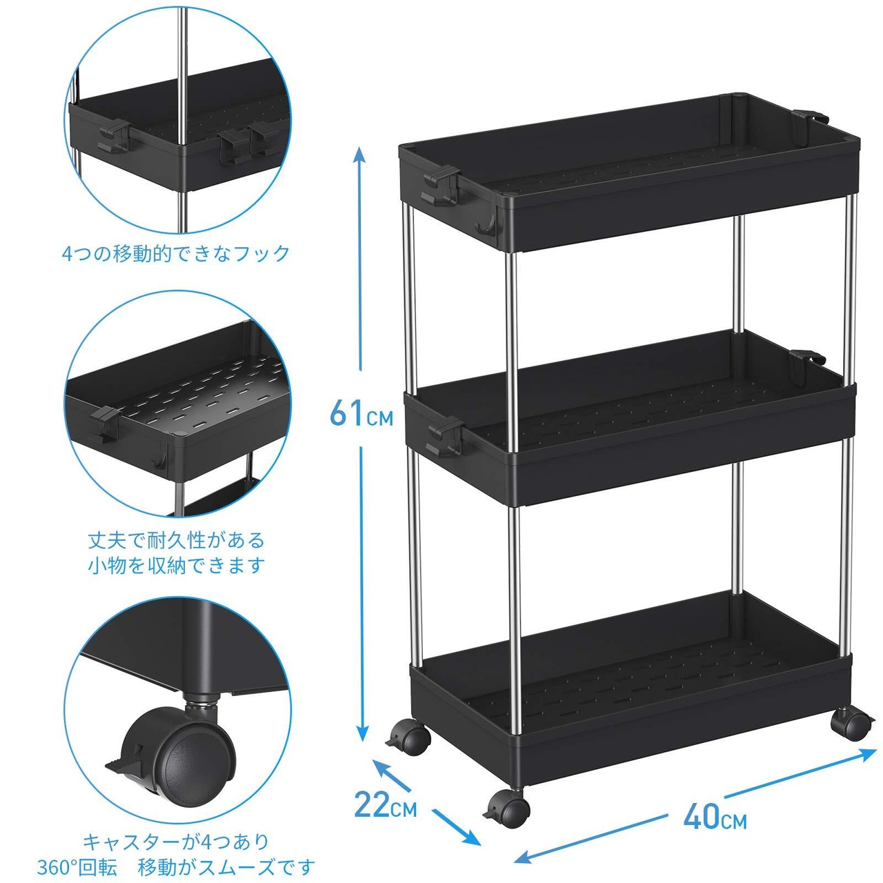 【高品質の家庭用収納 ワゴン】高級な材質は採用なので、高い安定性を誇ります。スリムボディーをして、部屋の隙間に自在に配置されています。トイレ収納、ベッドルーム、居間、子供部屋、キッチン、書店、美容室などの使用に最適して、収納力は抜群です。いろんなシーンで大活躍なキッチンワゴンです