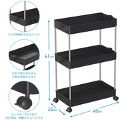 SPACEKEEPER キッチンワゴン スリム 隙間収納 22cm 収納ラック キャスター付き 収納カート ローリングラック おしゃれ 調味料 食品 ペットボトル 小物 台所 洗面所 冷蔵庫横 3段 ビッグ ブラック