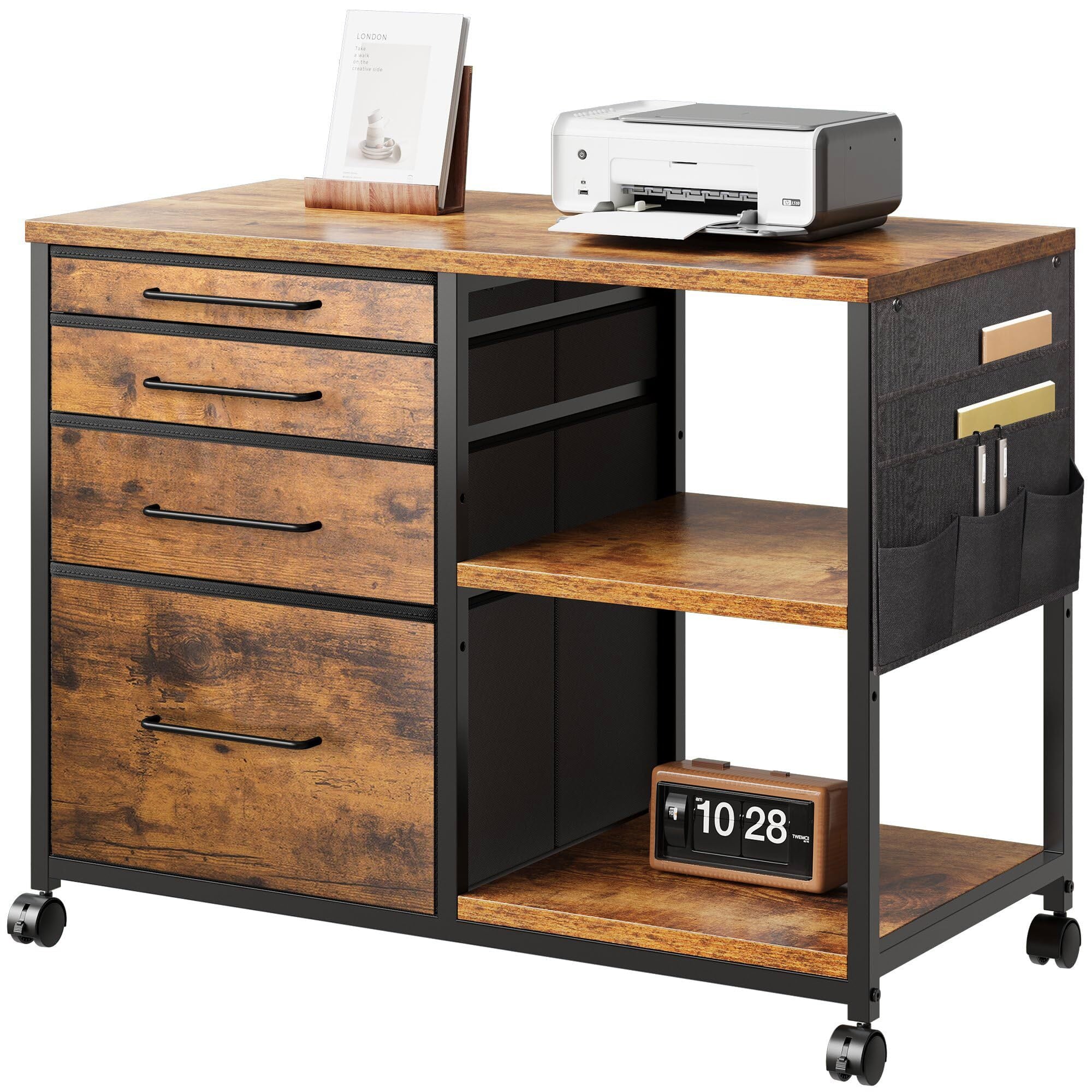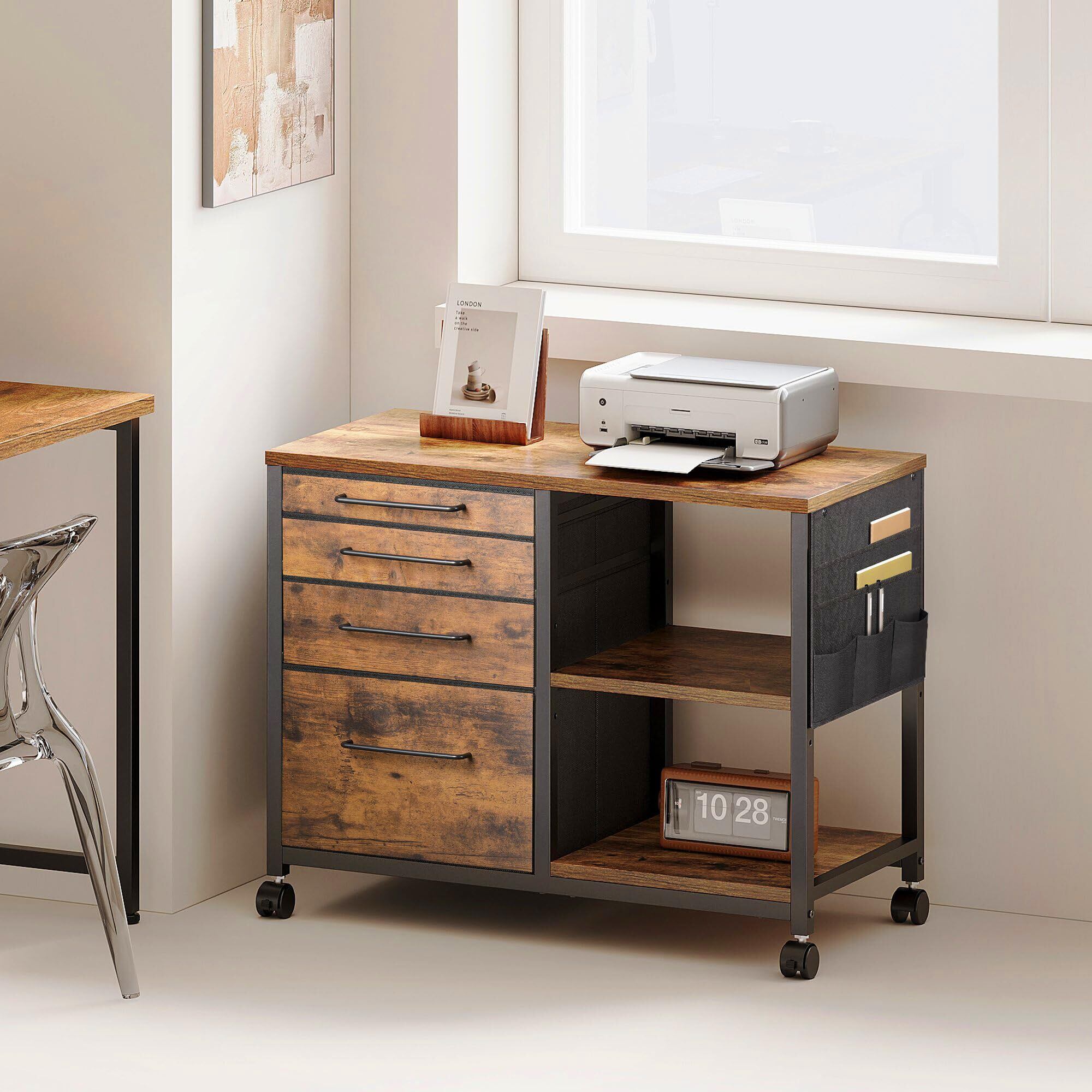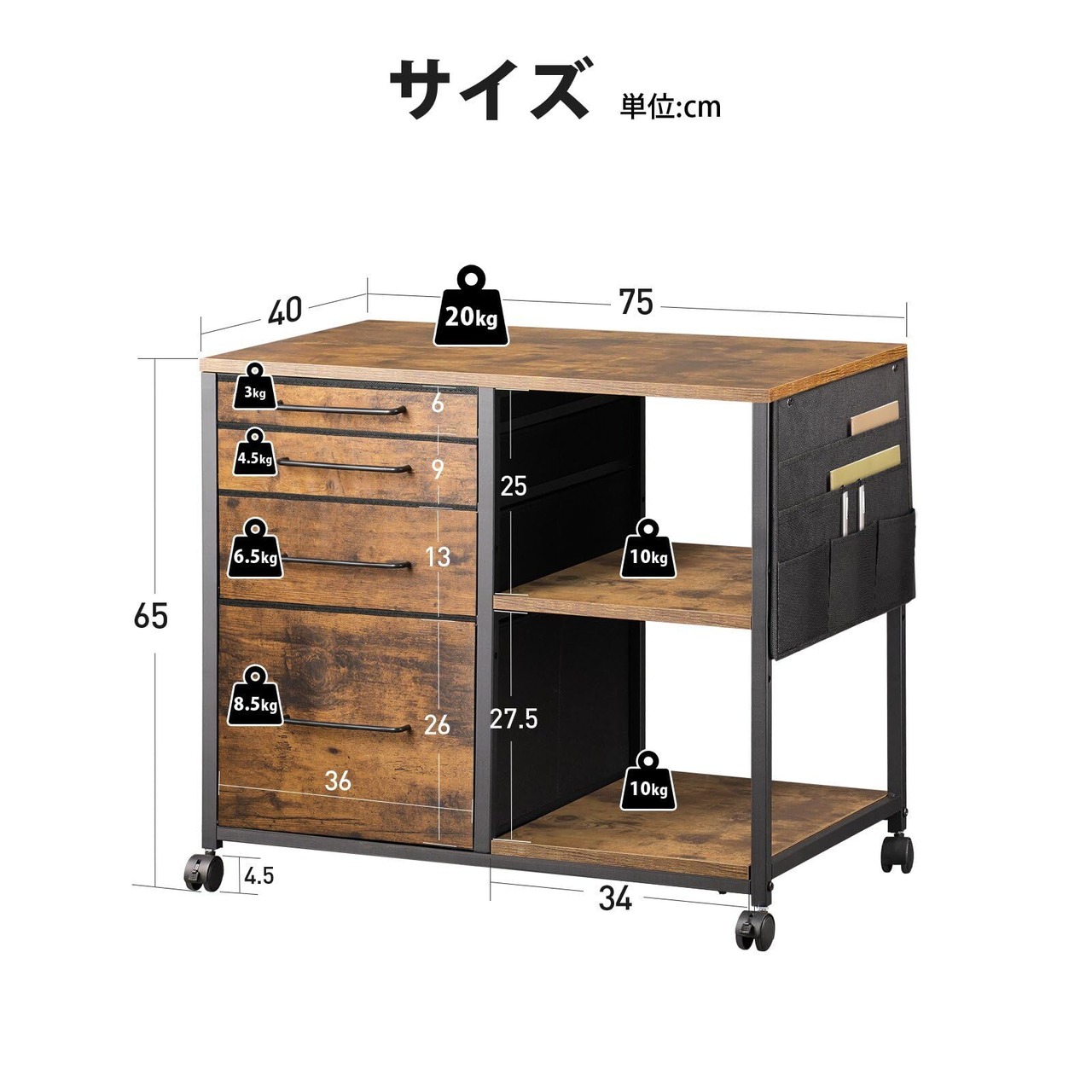 【在庫処分】YeTom サイドキャビネット デスクワゴン 布製 袖机 層板付き サイドワゴン 4段 オフィスワゴン A4対応 プリンター台 大容量 キャスター付き デスク下収納 幅750*奥行400*高さ650mm ビンテージ | ニコニコSHOP