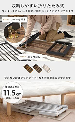 食事やワークスペースとしても快適にご使用いただけます。何をするにもちょうどいいサイズ感が魅力。折りたたみ可能なので、お掃除や来客時にはサッと収納できます。ちょっとした物を天板下に収納できる網棚付き。粉体塗装で水・傷に強く錆びにくいのも特徴です。