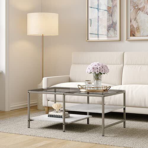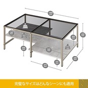 【おしゃれなローテーブル】ガラス、木材とスチールの絶妙なコンビネーションに飽きの来ない美しいシルエットを加え、上品で落ち着いた雰囲気を演出してれくます。シックで洗練された佇まいで、置くだけでスタイリッシュな空間を創り出し、リビングテーブルとして最適です。