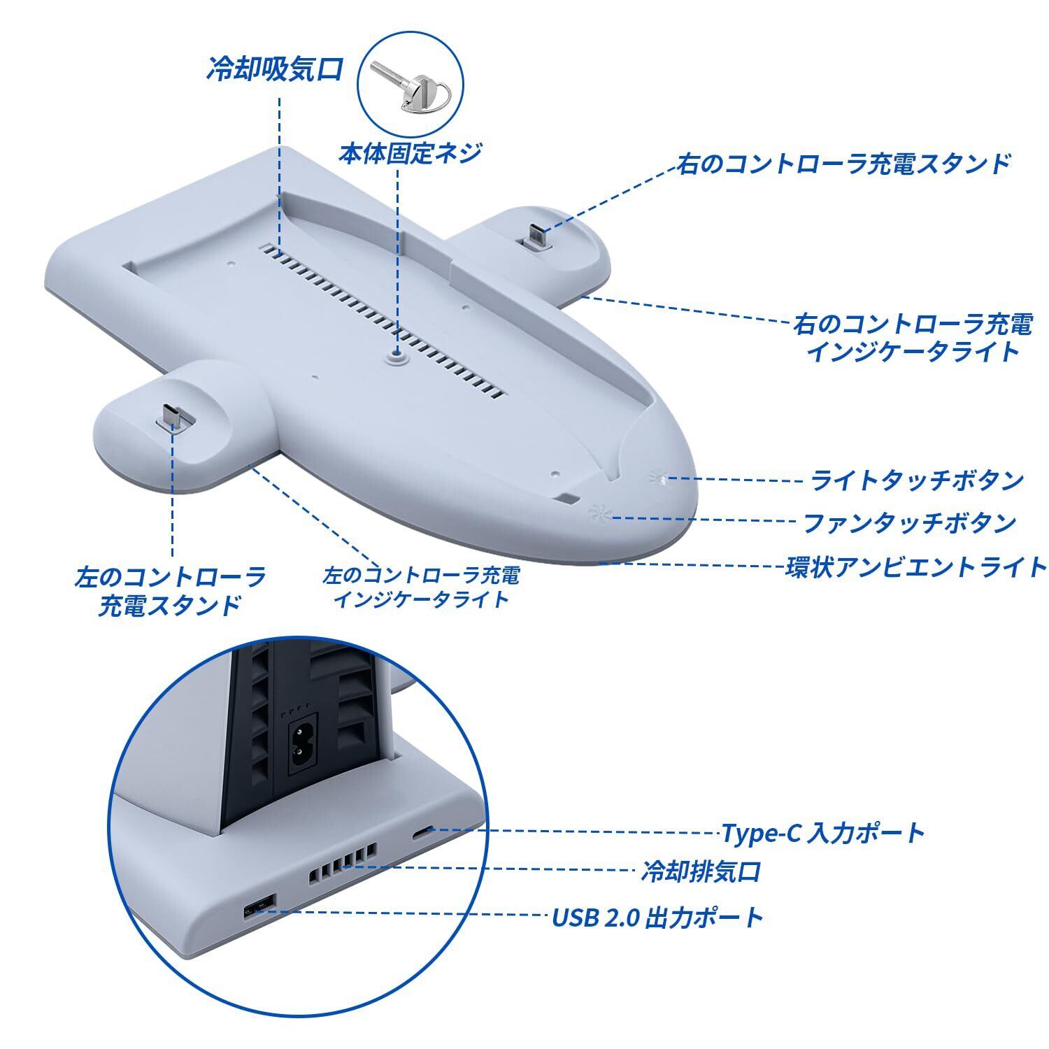 【特価商品】Mcbazel 新型 PS5 Slim対応 縦置き RGBスタンド 冷却ファン搭載 過充電防止 コントローラー 2台同時充電対応 省スペース ディスク/デジタル版兼用 PS5 Pro非対応- ホワイト | ニコニコSHOP