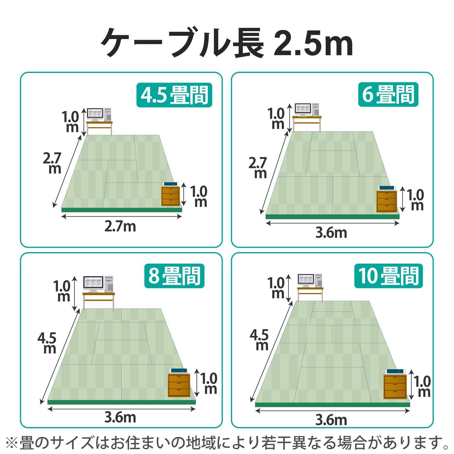 リビングでもゆったり接続できるケーブル長2.5mです。