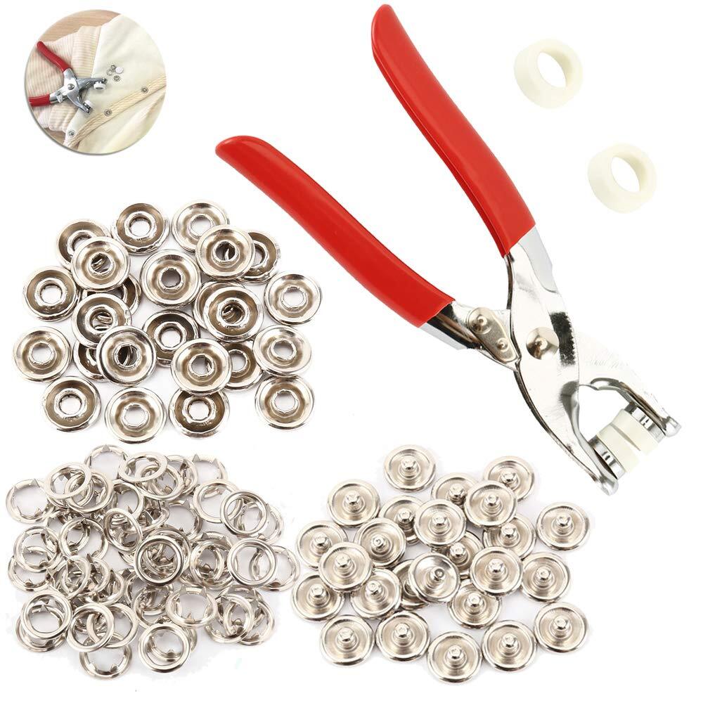 elfishjp リングボタン リングスナップ ハンディプレス 打ち具セット ホックボタン スナップ留め具 収納ケース付き 100個入り