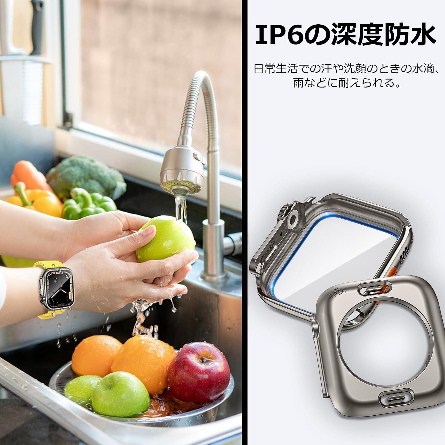 TALENANA for Apple Watchケース 45mm/44mm/41mm/40mm 瞬時にApple Watch Ultraに変身する 防水 series 9/8/7/SE/6/5/4 液晶保護フィルム+保護ケース+背面ケースの3 in 1デザイン 一体型 液晶保護 耐衝撃 高透過率(Series 9/8/7、45mm、チタンカラー)
