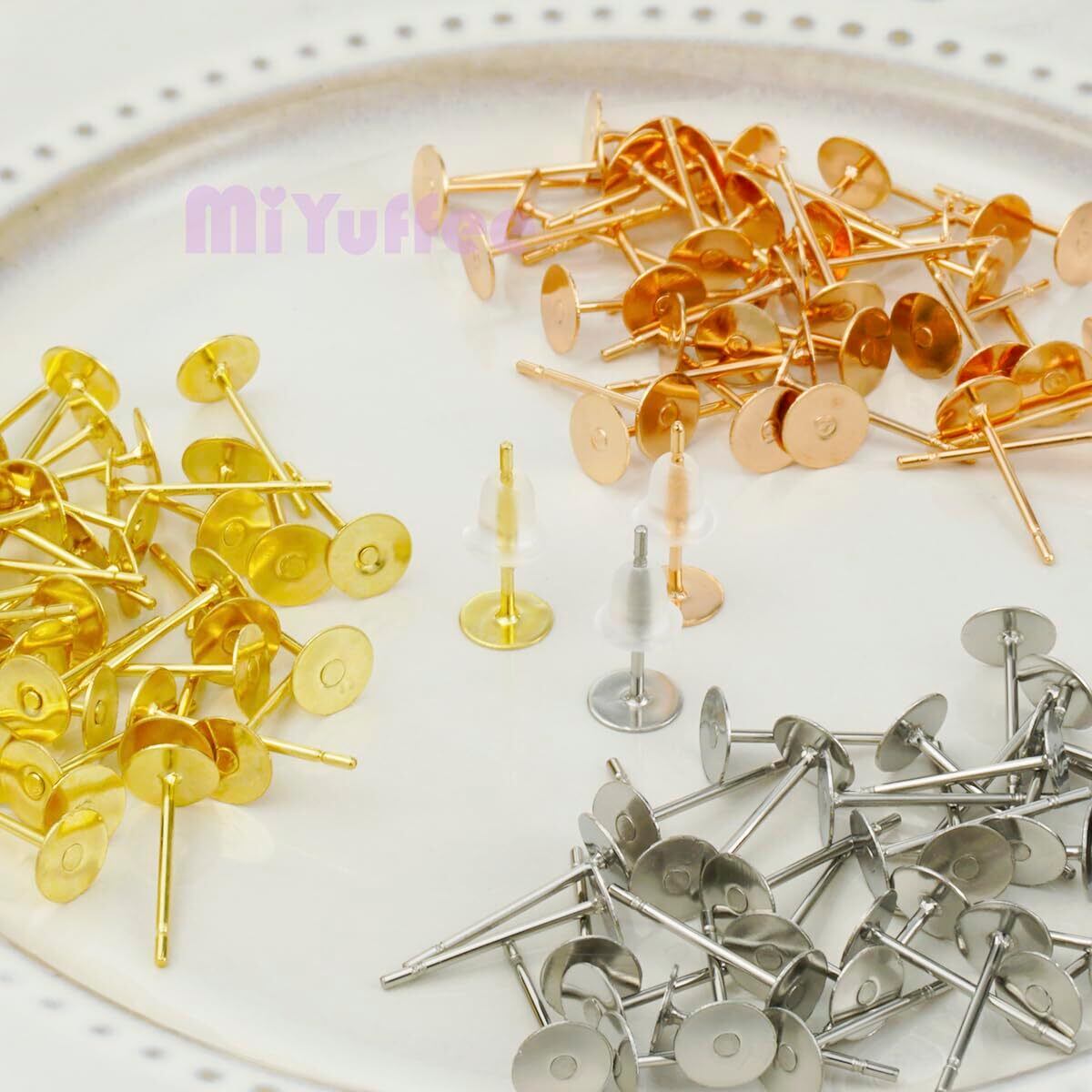 丸皿ピアスパーツとシリコンキャッチのセットです。ゴールド・シルバー・ピンクゴールドの3色パーツも入ります。