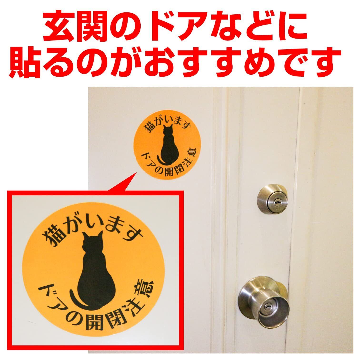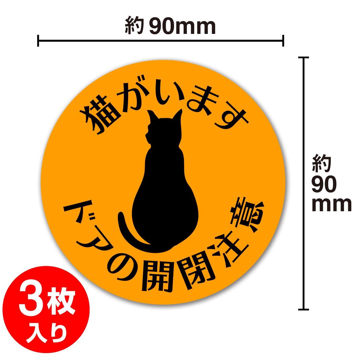 【猫がいます ドアの開閉注意 シール】 3枚入 猫の脱走防止ステッカー 90mm丸型 【猫 短毛種】 防犯 玄関 屋外用 飛び出し 日本製