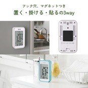 ●防水ではありませんので、湿気の多い所や水のかかるところでの使用や、水洗いはご遠慮ください。 ●温湿度計は箱から出して、約30分後に正しい目盛を表示します。