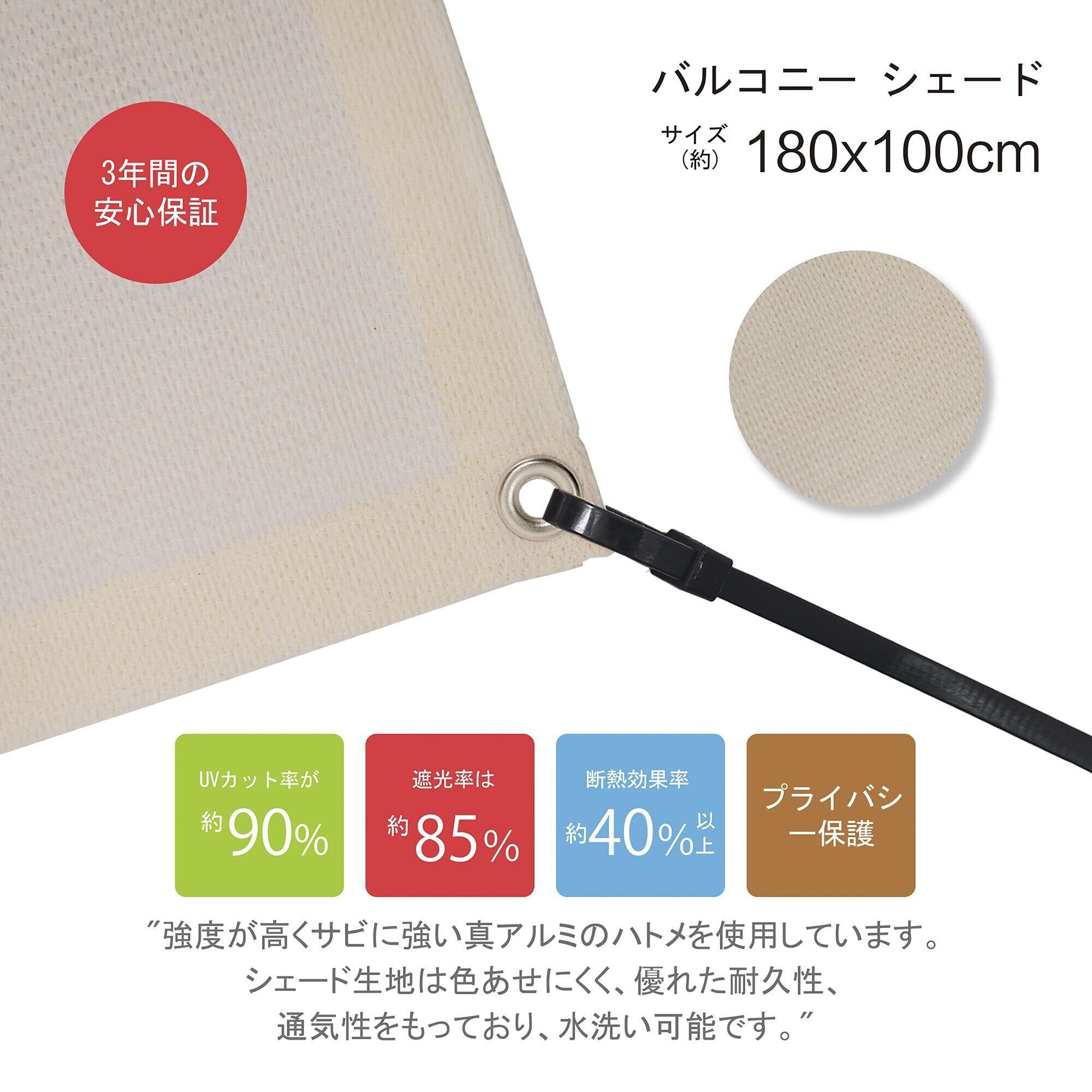 HIRARI バルコニー シェード 180×100cm 目隠し UVカット アイボリー
