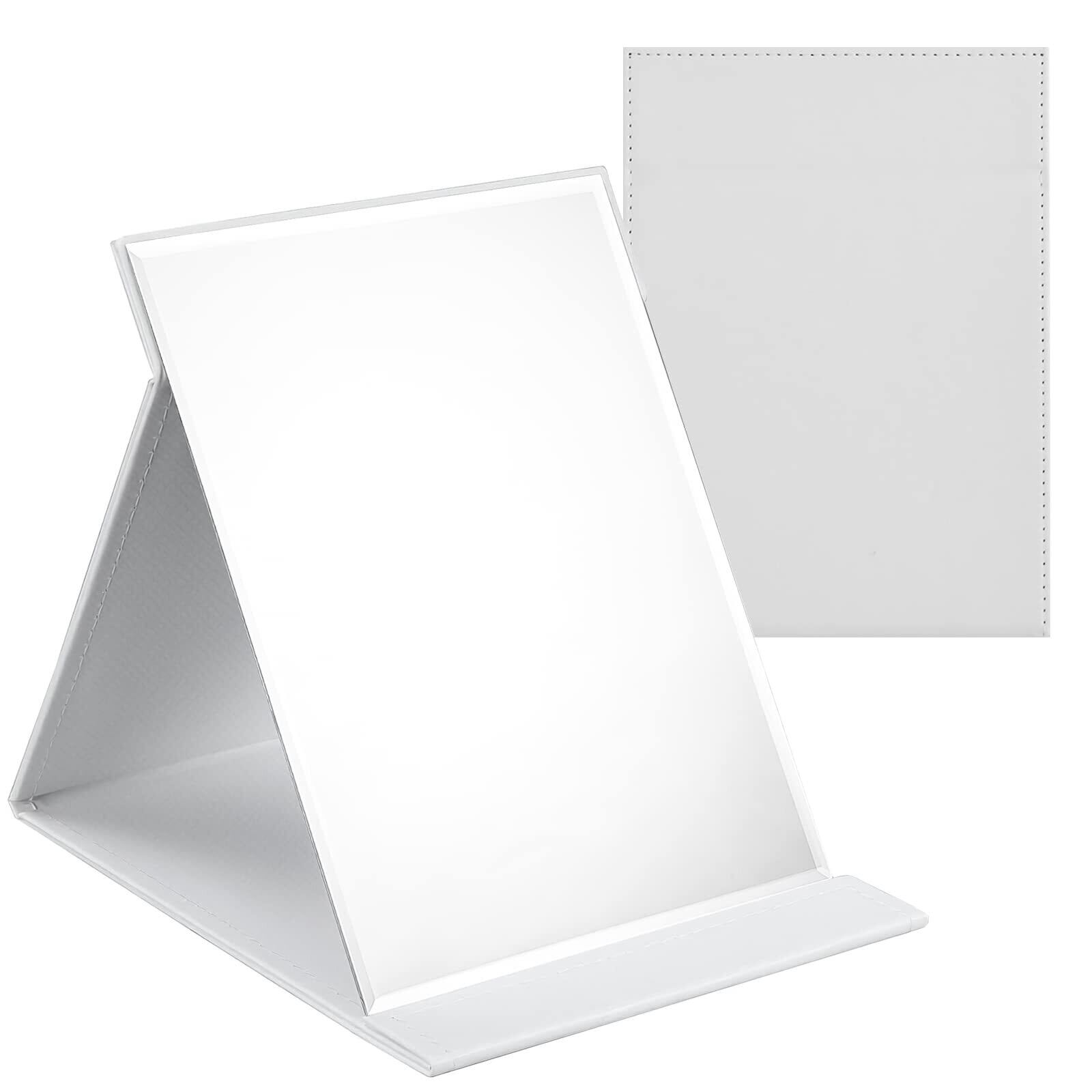 OWLKELA 卓上鏡 コンパクトミラー 折りたたみ手鏡 Sサイズスタンドミラー レザーカバー&割れにくい&おしゃれ 16*12cm ホワイトかがみ