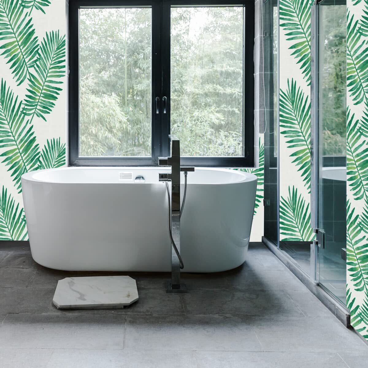 Homya 壁紙 シール 剥がせる リメイクシート 防水シール 45cm*10m リフォームシート 防カビ カッティングシート のり付き 葉柄 北欧風
