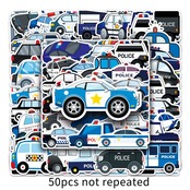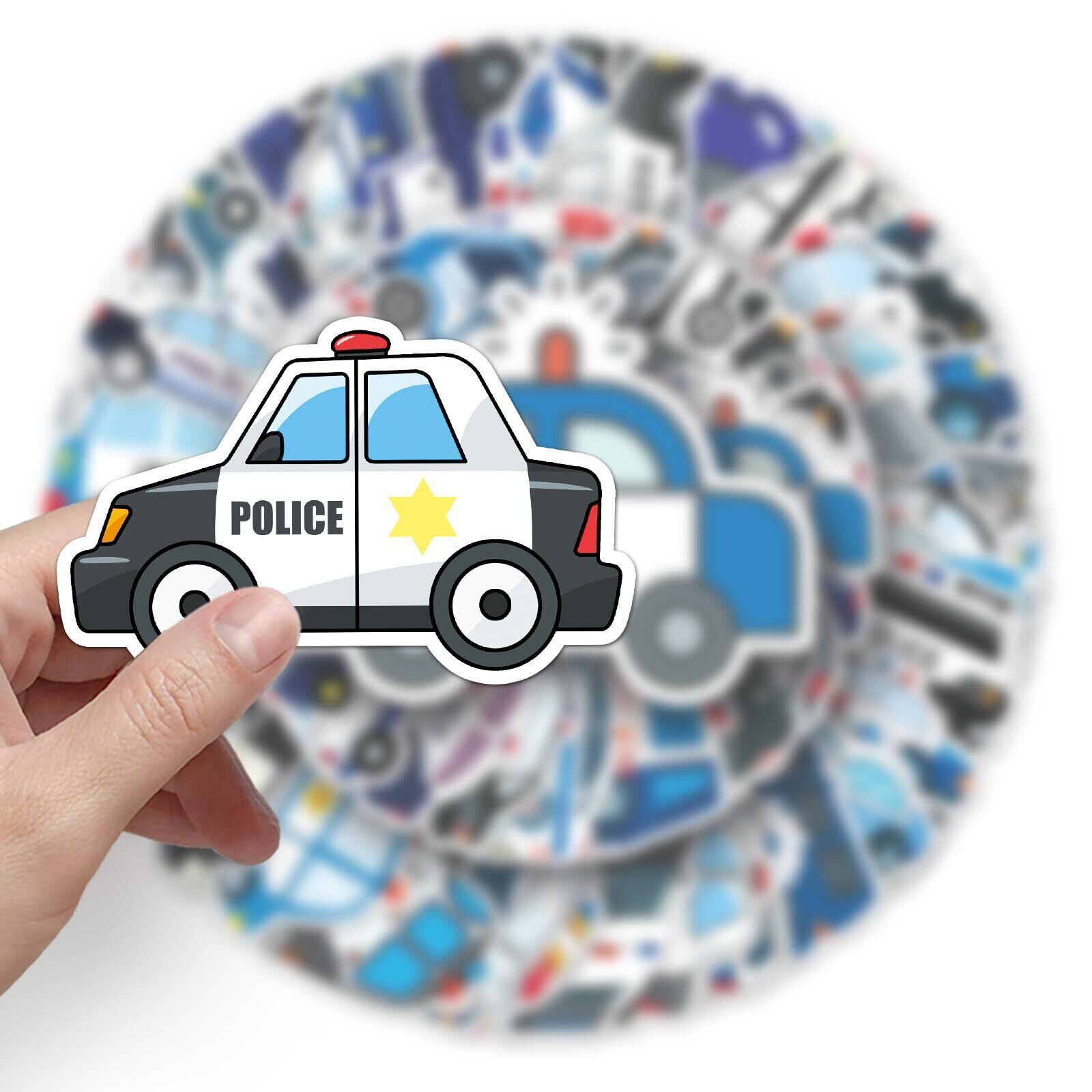 スポーツステッカーセット 50枚 防水 スポーツシールパック ステッカースーツケース 車 バイク ヘルメット スケボー ギターなどに適用 (パトカー)