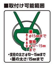 取り付け可能範囲:茎の太さφ15mmまで、支柱の太さφ10~15mmまで