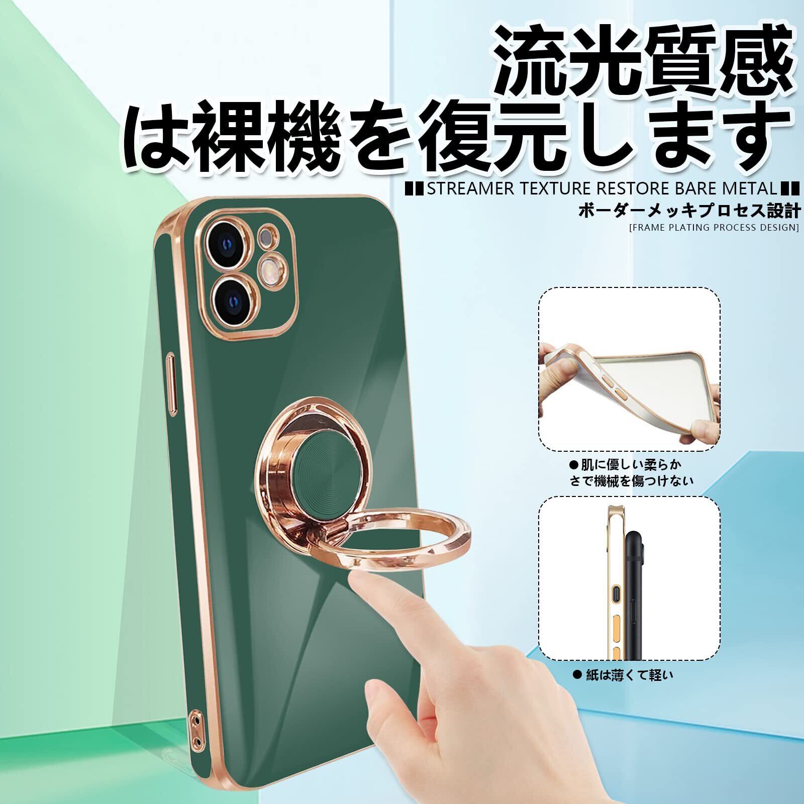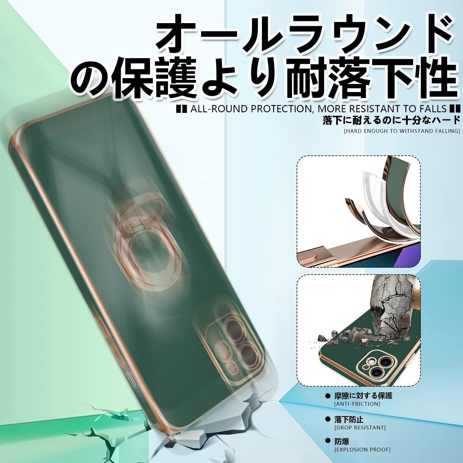 iPhone 12 ケース リング付き 360°回転スタンド 車載ホルダ対応 スタンド機能 耐衝撃 アイフォン 12スマホケース カバー 薄型 軽量 メッキ加工 キカメラ保護 ストラップホール付き Zeunoen(グリーン)
