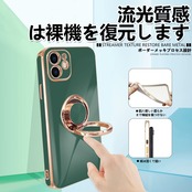 【在庫セール】iPhone 12 ケース リング付き 360°回転スタンド 車載ホルダ対応 スタンド機能 耐衝撃 アイフォン 12スマホケース カバー 薄型 軽量 メッキ加工 キカメラ保護 ストラップホール付き Zeunoen(グリーン) | ニコニコSHOP