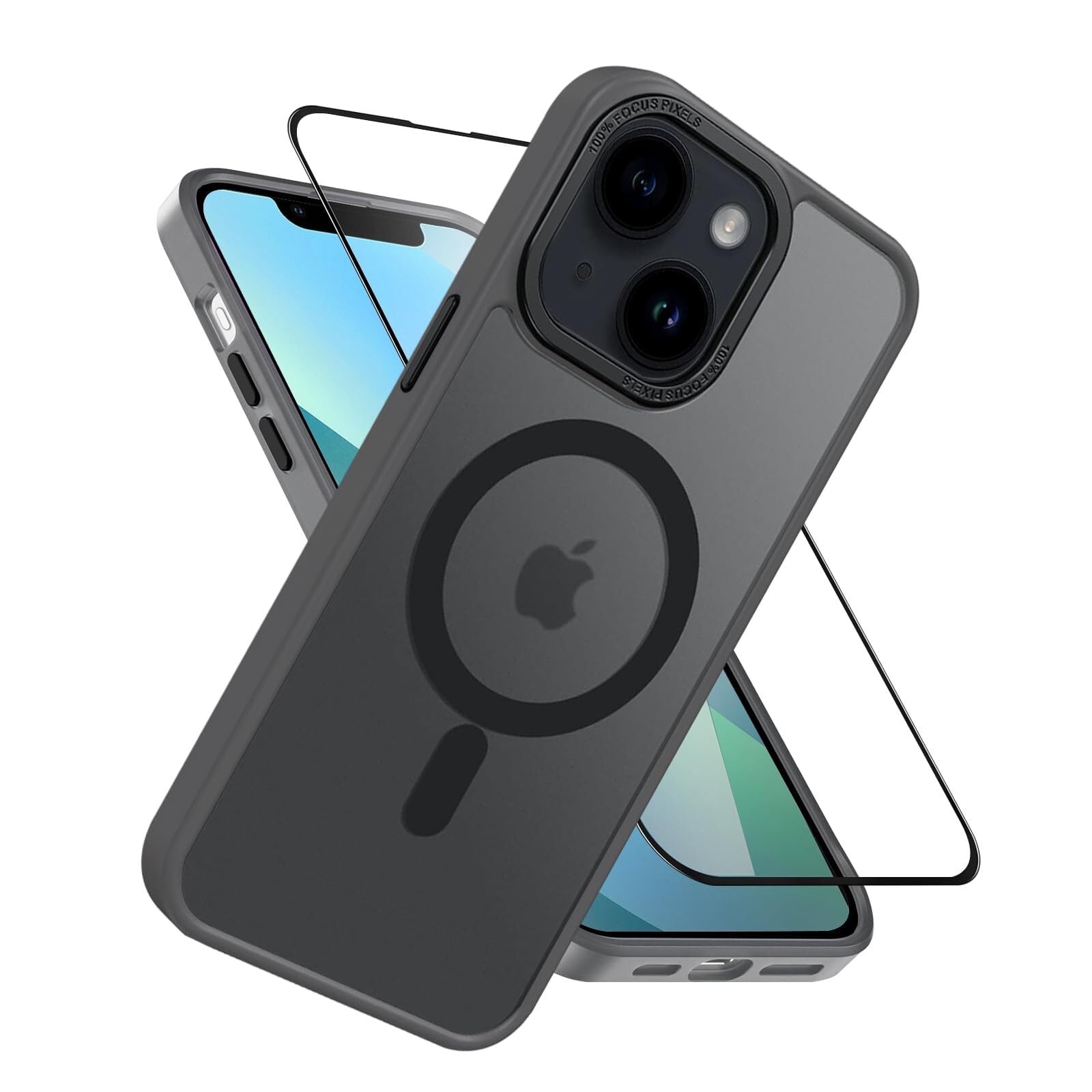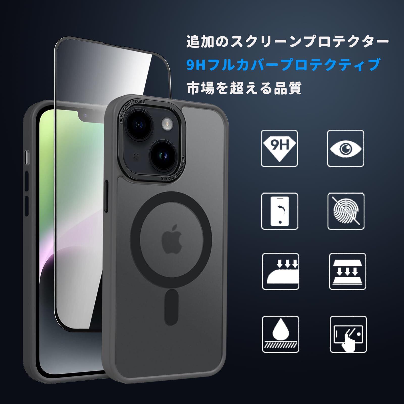 【特価商品】Kahper for iPhone14 ケース 6.1インチ専用【ガラスフィルム付き・MagSafe対応】 マグネット搭載 黄ばみなし いphone14 ケース 米軍MIL規格 耐衝撃 耐久性 全面保護 スマホケース iphone14 マグセーフ対応 ストラップホール付き アイフォン14 ケース 軽量 指紋防止 半透明 iPhone14 カバー ワイヤレス充電 レンズ保護 ブラック+クリア | ニコニコSHOP