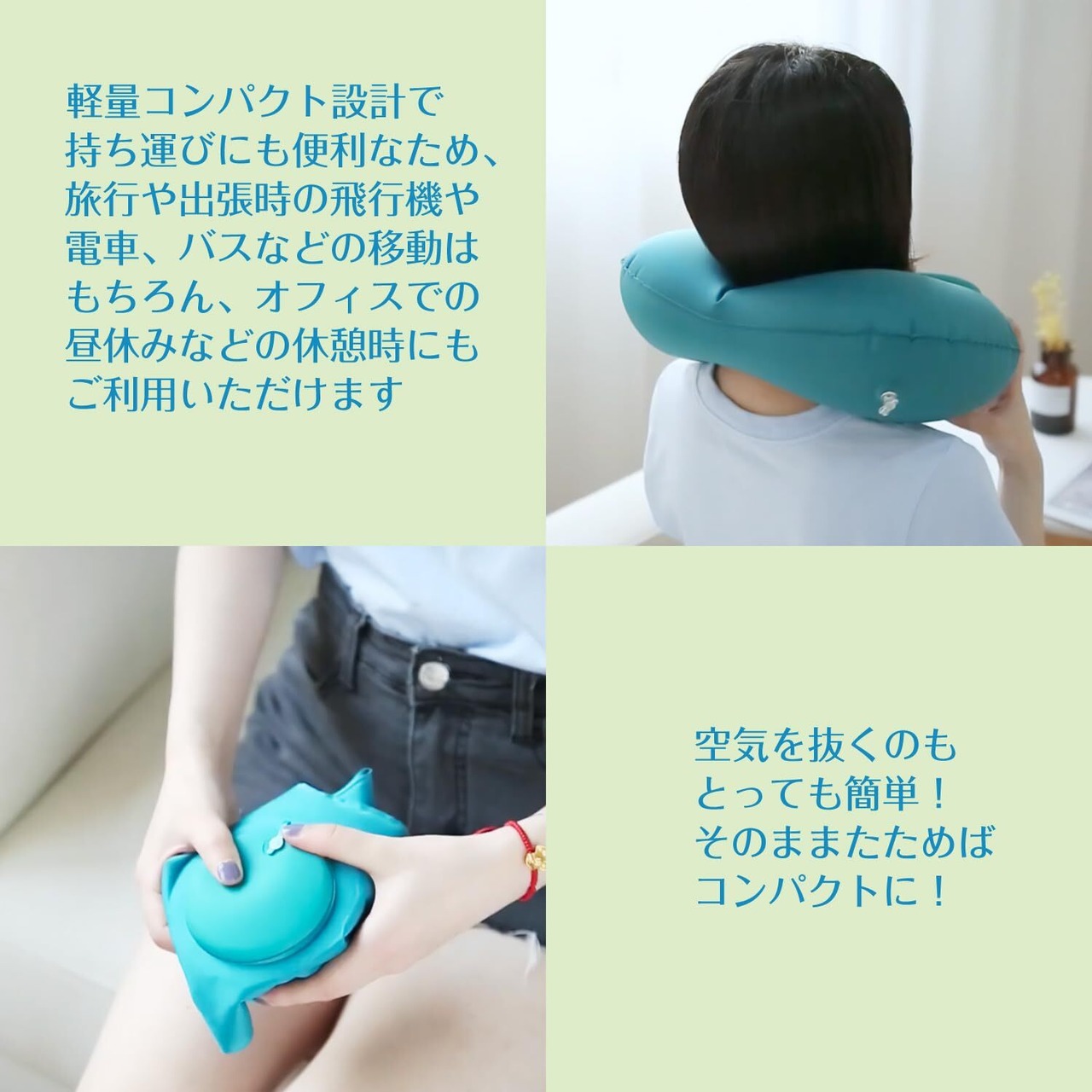 ネックピロー U型まくら 首枕 エアーピロー手動プレス式膨らませる 旅行用