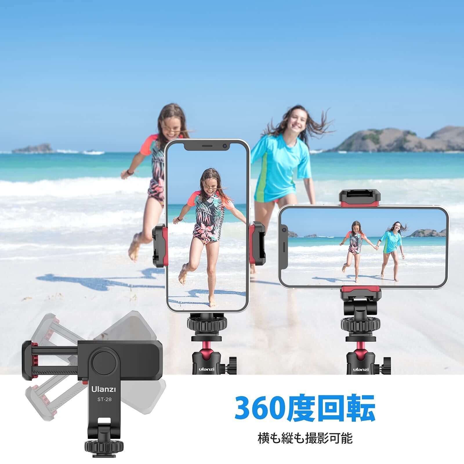 ULANZI携帯ホルダー 三脚 スマホホルダー 三脚マウント 360度回転 スマホスタンド コールドシュー付き スマートフォン三脚マウント1/4インチネジ穴 クリップ iPhone/Android/ZV-E10/三脚/自撮り棒/カメラ対応