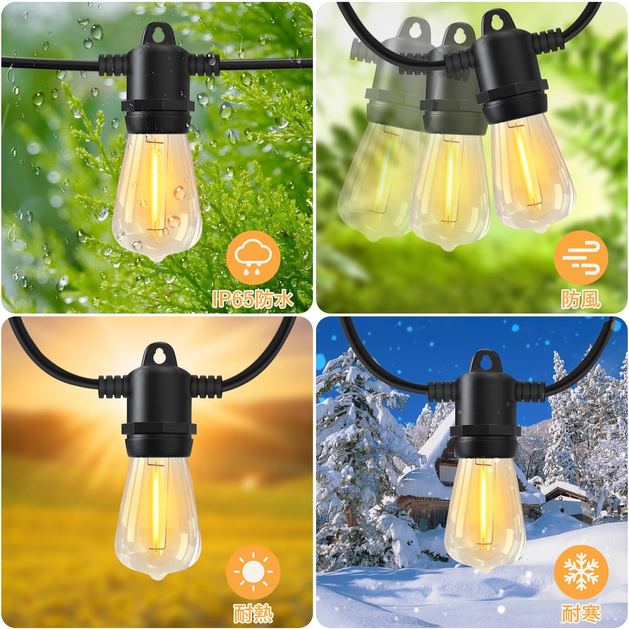 Benature LEDストリングライト 屋外 防雨型 電球色 延長コード スイッチ付き 14.8m 16個電球 PC素材 破損しにくい E12ソケット 連結可能 室内照明 キャンプライト クリスマス電飾 結婚式 庭 誕生日 商店街 【適格請求書発行可】
