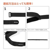 バンドは連結可能!さらに活躍の幅がUP 手軽に簡単に連結できる仕様なので、マット2本纏めて保管やブロックなどの ヨガプロップスを収納保管にも使えるマルチなバンドです。