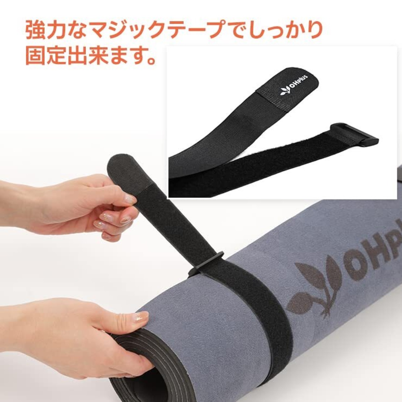 マットの収納や保管を手軽に便利に。 マットバッグや固定幅バンドは決まったサイズしか収納できず困った事ありませんか? OHplusのバンドはベルトタイプなのでサイズの調整が自由自在! 厚みの違うマットでもしっかりと収納保管が出来ます! ※ヨガマットは4mmから10mmの厚さまで対応