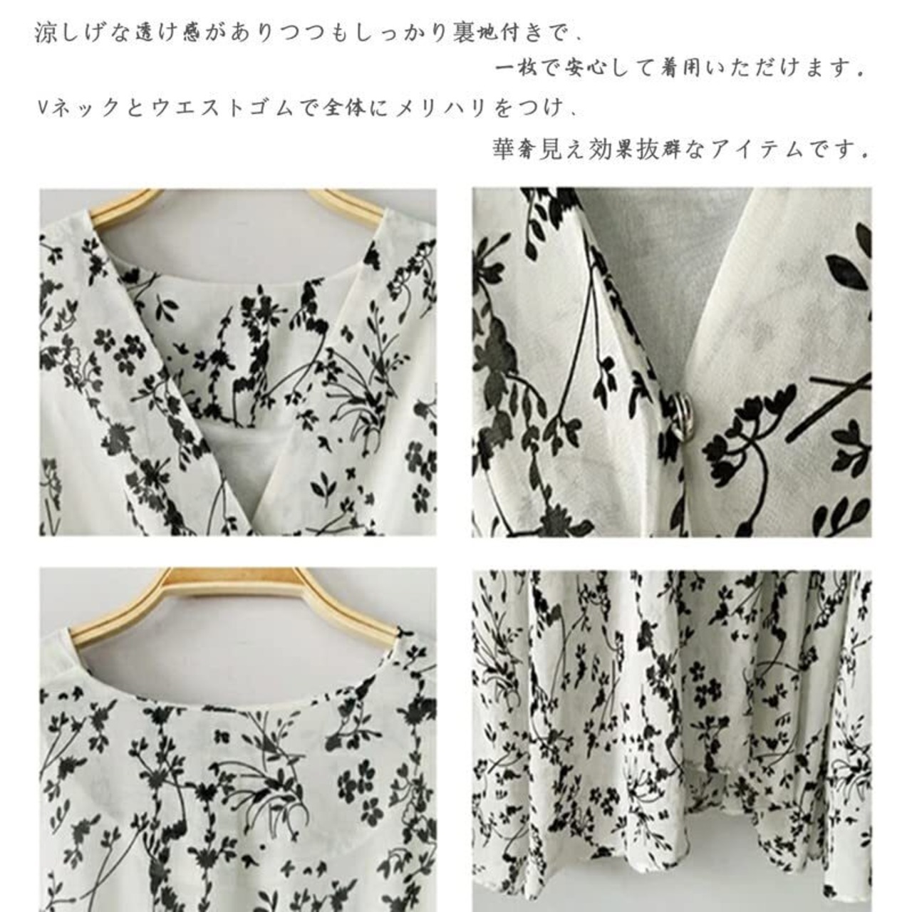 Point2.軽やかに揺れる女性らしい印象を与えてくれるロングティアードワンピース、かわいらしい花柄パターンがポイント。深いVネックなので鎖骨やデコルテがきれいに見えるレディライクな雰囲気を引き立て。◦STYLING:1枚で着映えするワンピースは足元や小物で印象を変えて楽しめます。ヒールを合わせてフェミニンに、クリアサンダルやかごバッグなどの季節感のあるアイテムを合わせて夏らしいコーディネートが◎
