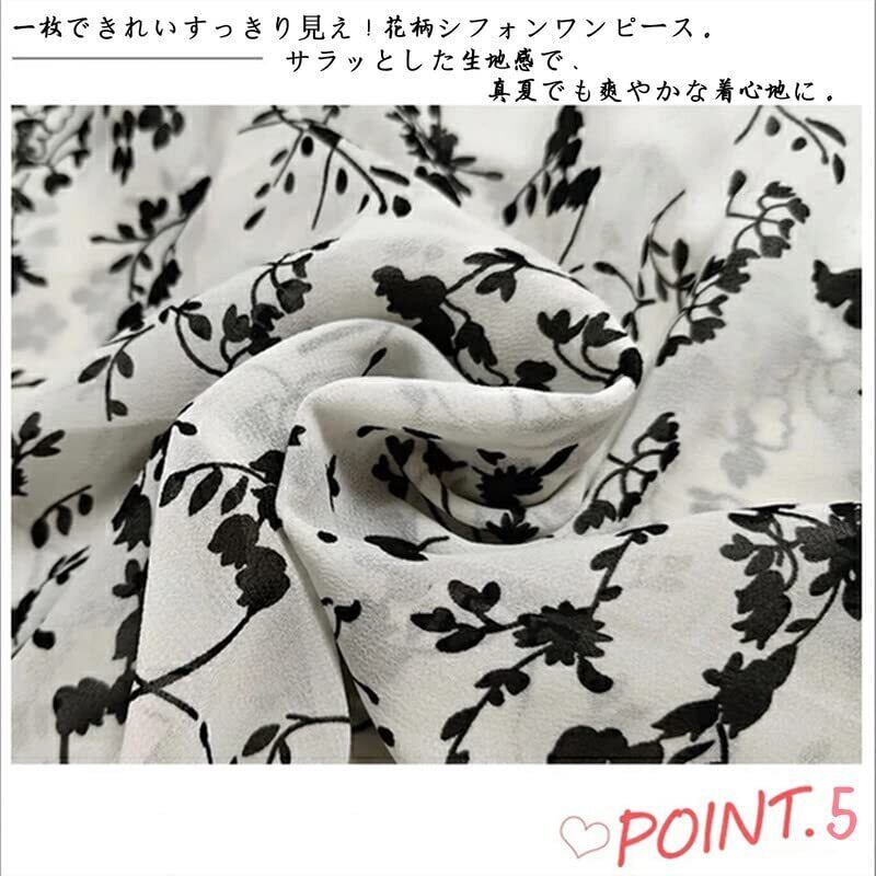 [slenderlady] スレンダーレディ〕ワンピース レディース 花柄 ロング 夏 半袖 パフスリーブ vネック マキシ丈 シフォン 薄手 涼しい ウエストゴム きれいめ リゾート フェミニン 上品 女らしい 220706T-R