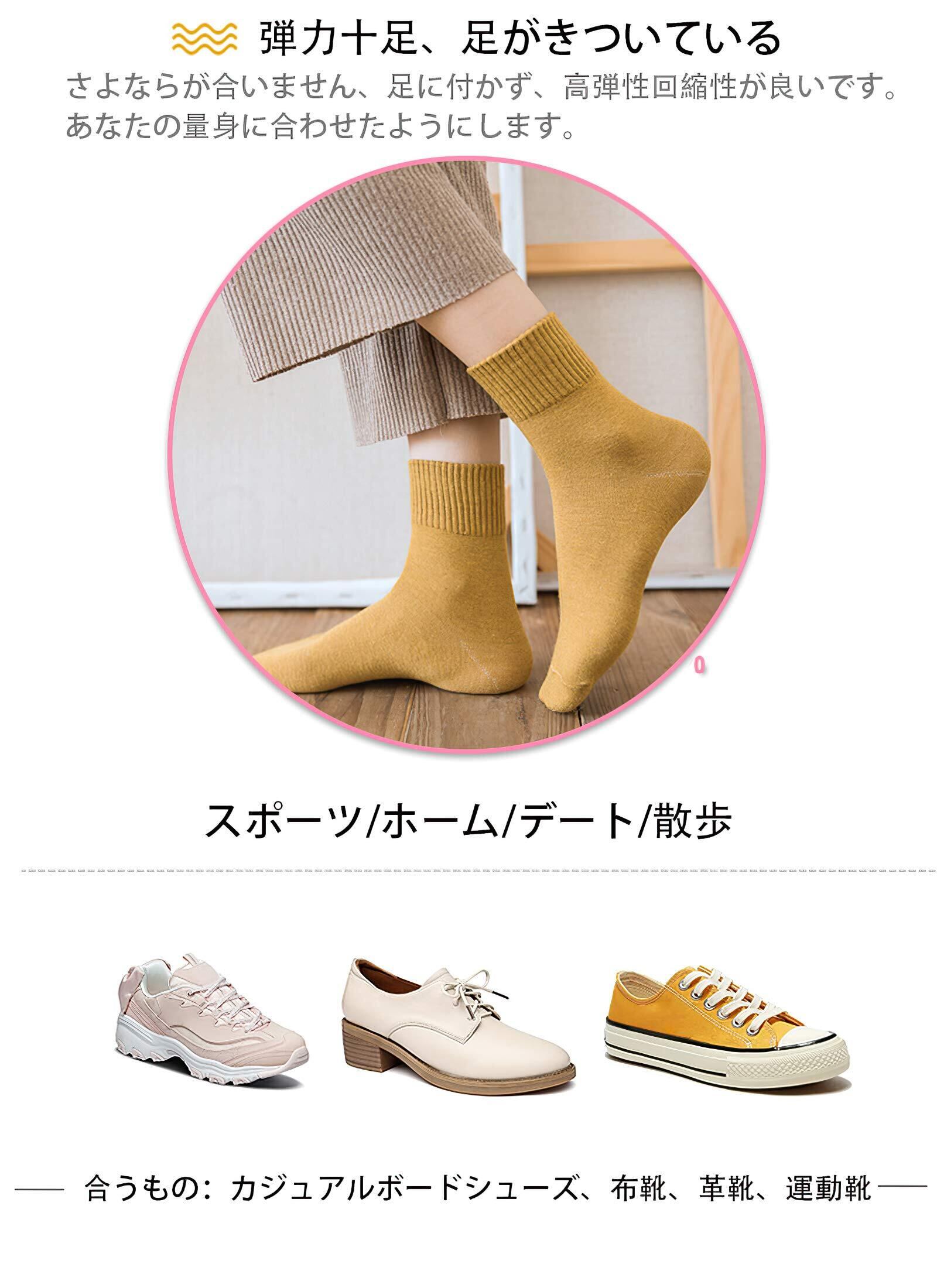 【サイズ】弾性ゴムを使用しているので、この美しい綿靴下は足首にはずれません。サイズ22-25cmの大きいサイズは伸縮性が良く、しっかりとフィットしてぴんとした感じです。履いたらすぐに慣れます!履いた感覚は中に包まれているかのようです。これは脱げないシンプルなカジュアル靴下で、ケアや妊娠中の女性にも、快適な四季の女性靴下です。