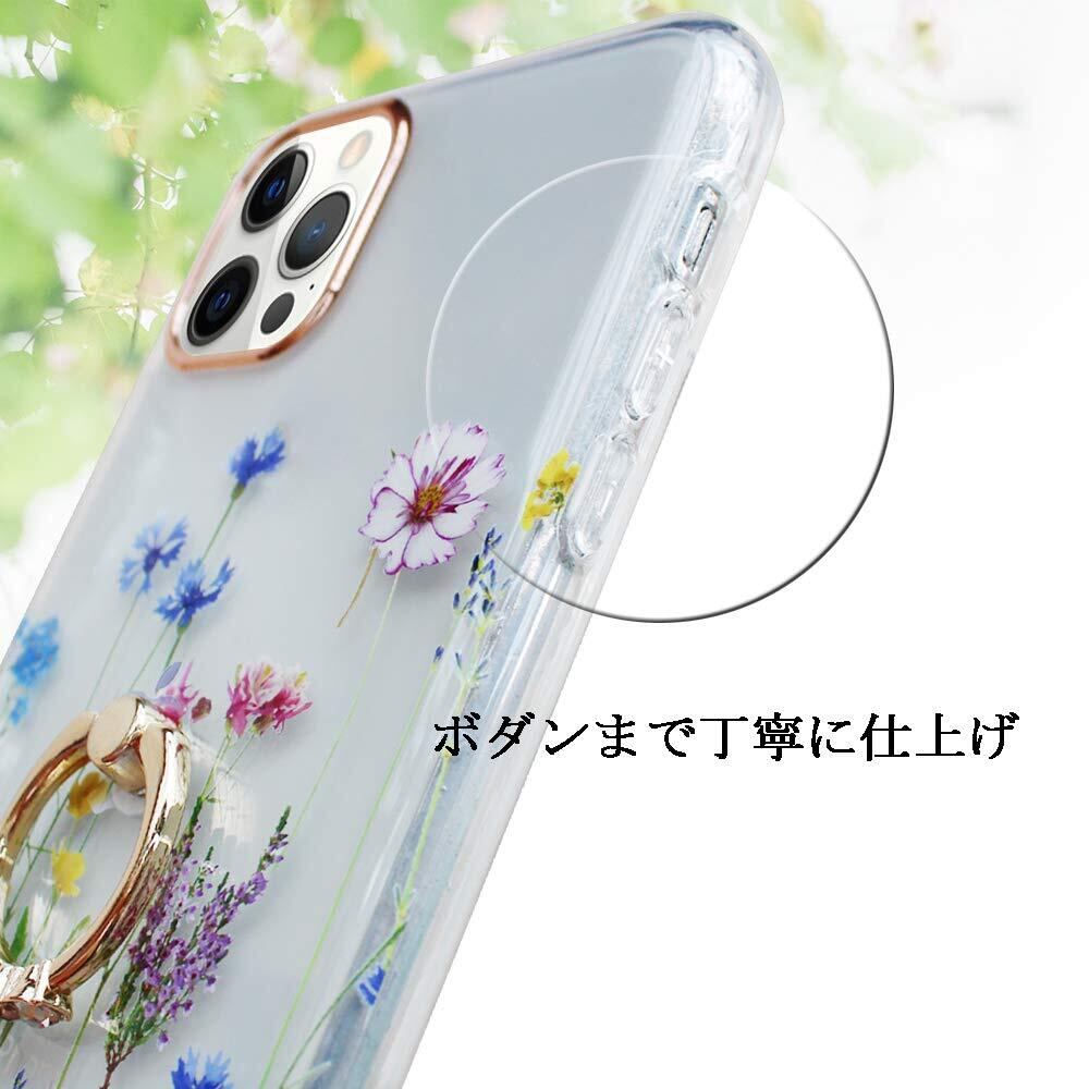 iPhone 用 ケース クリア リング付き かわいい 花柄 ハード PC
