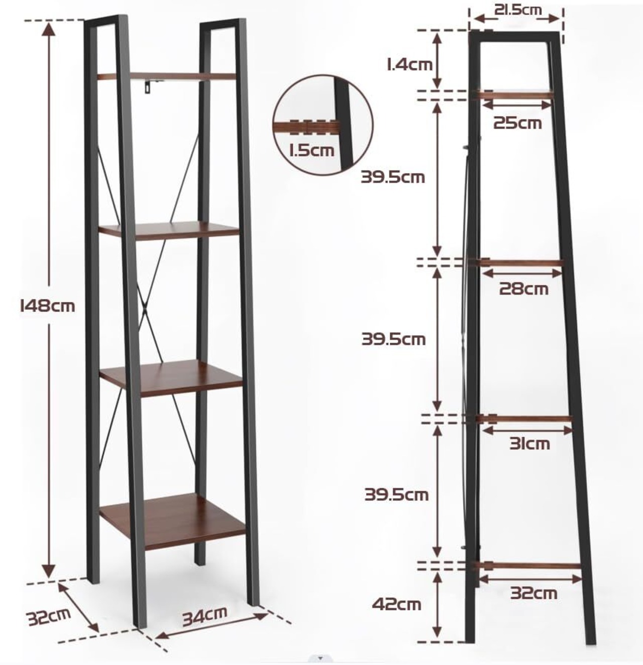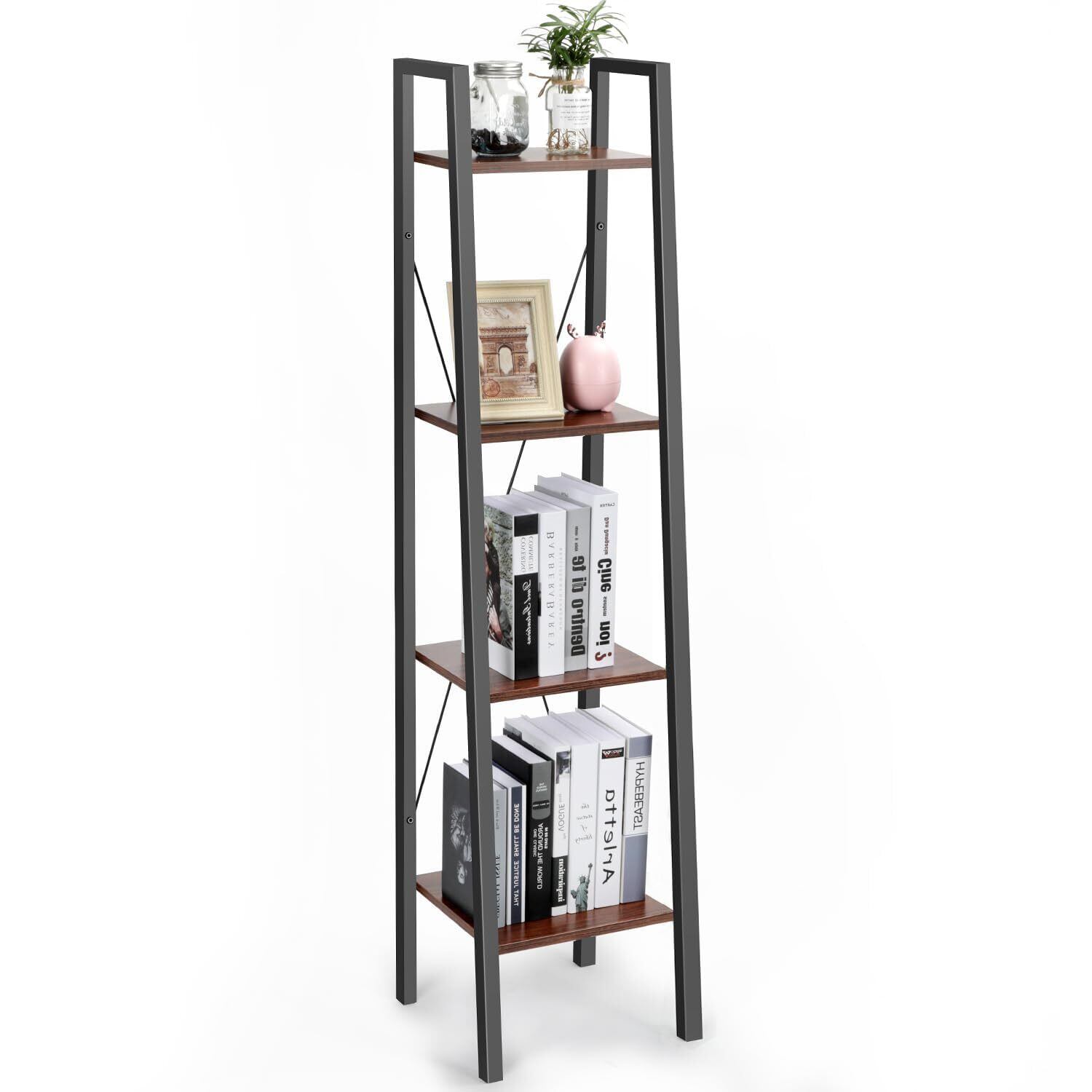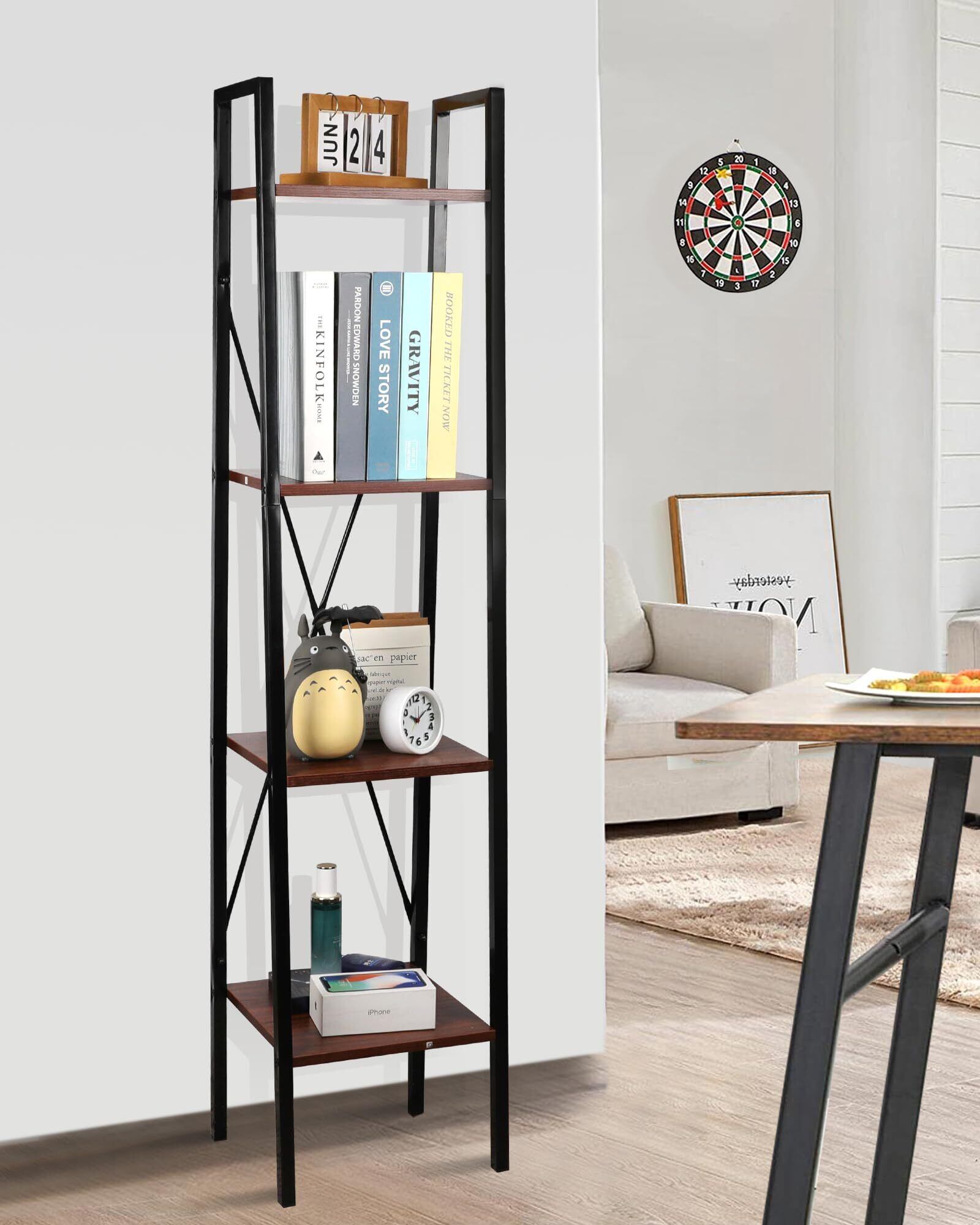 ラック オープンシェルフ4段 木製 収納 本棚 オープンラック キッチンラック リビングラック 棚 おしゃれ 北欧 木目調 組立簡単 ディスプレイラック スチールラック 幅34cm×奥行32cm×高さ148cm